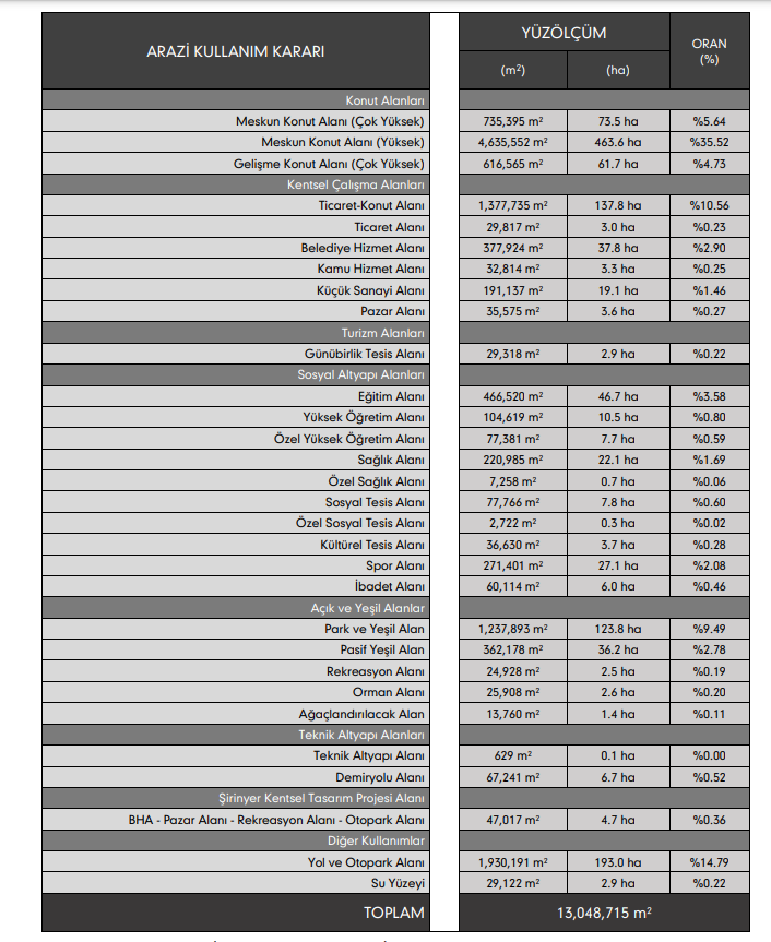 Askıya çıkan planlarla birlikte hali hazırda 312 bin 904 kişinin yaşadığı bölgenin nüfusunun 330 bine çıkarılmasının önü açılıyor. Planlama alanının 598,8 hektarlık kısmı konut alanı olarak belirlendi.