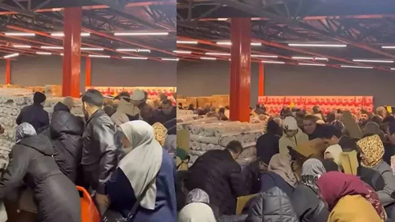 İçeri giren müşteriler, istediği ürünü alabilmek için birbirleriyle yarışırken o anlar cep telefonu ile görüntülendi.