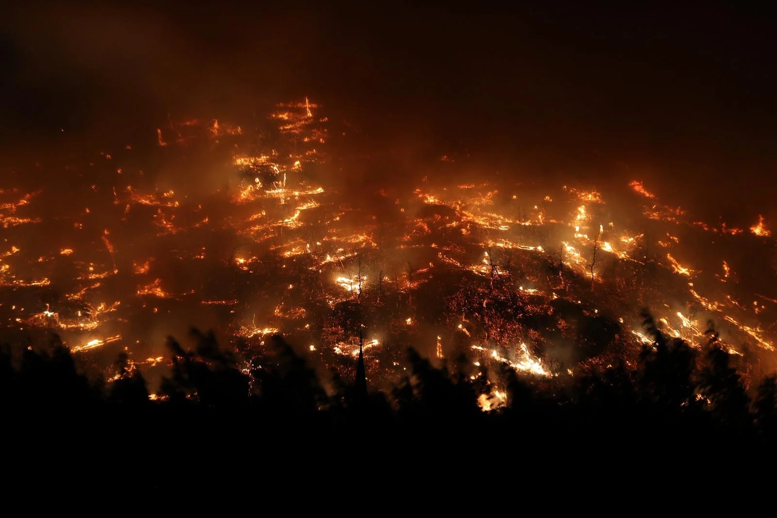 Bu sırada vatandaşlar, rüzgarın etkisiyle büyüyerek üzerlerine doğru yönelen alevlerden kaçtı.