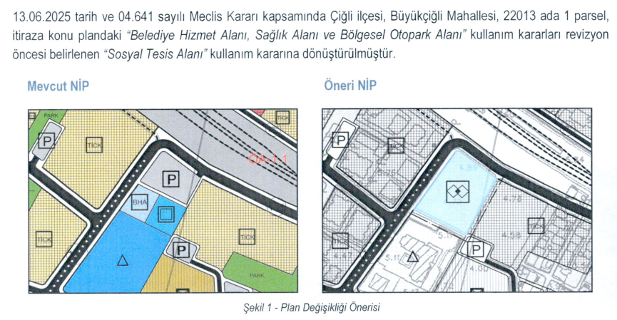 Çiğli Belediye Meclisi ve İzmir Büyükşehir Belediye Meclisi’nce onaylanan son imar planları TMMOB Şehir Plancıları Odası İzmir Şubesi ve hak sahipleri tarafından açılan davalar sonucunda iptal edilmişti. Yeni imar planlarının mahkeme kararlarında yer alan gerekçeler doğrultusunda hazırlandığı kaydedildi.