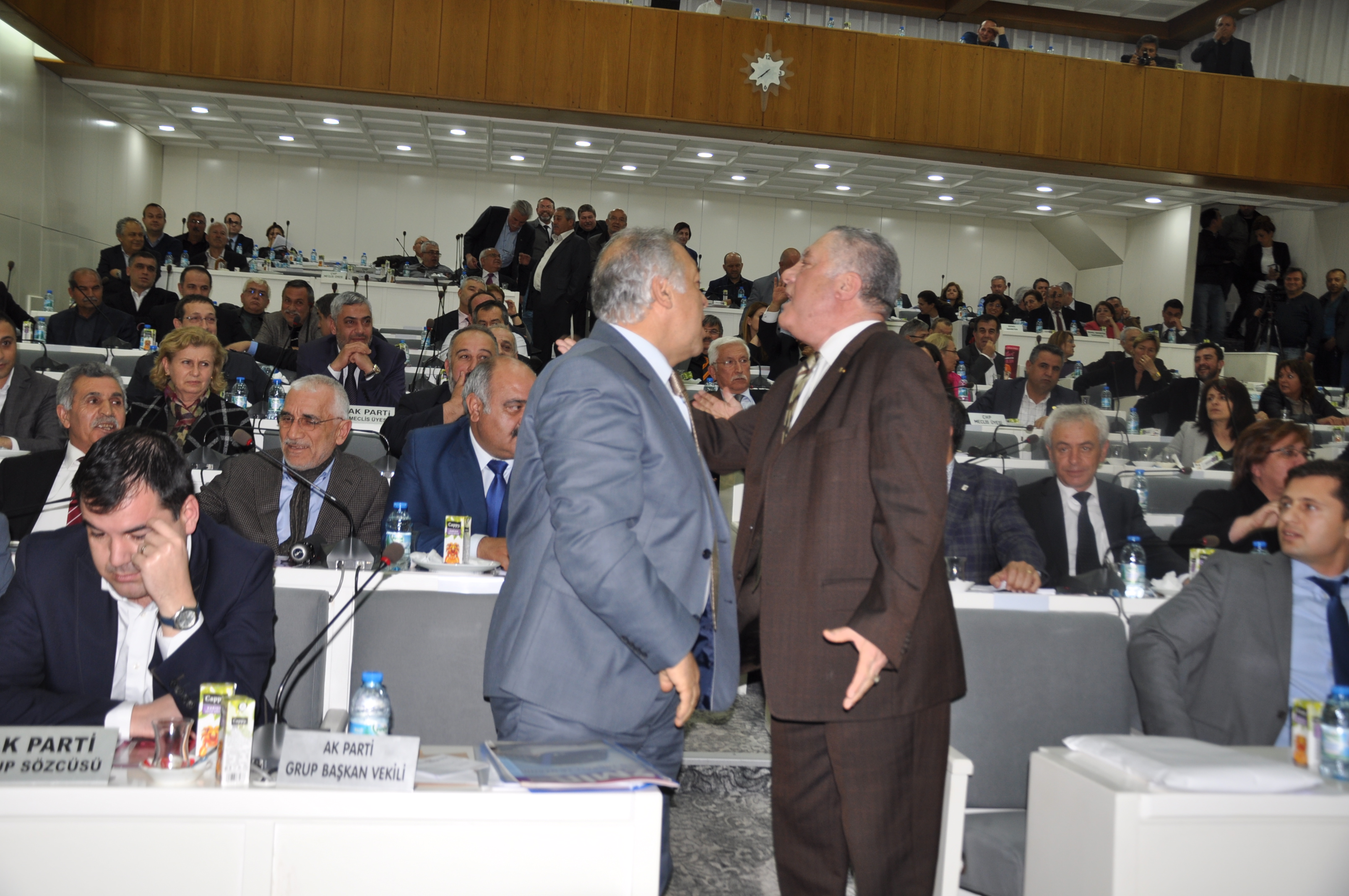 Mecliste bu konuşmalar sırasında gruplardan sesler yükselirken, CHP'li meclis üyeleri ile AK Partili meclis üyeleri arasında gerilim yaşandı. AK Partili İmet Tunç, CHP'li meclis üyesinin üzerine yürüdü.