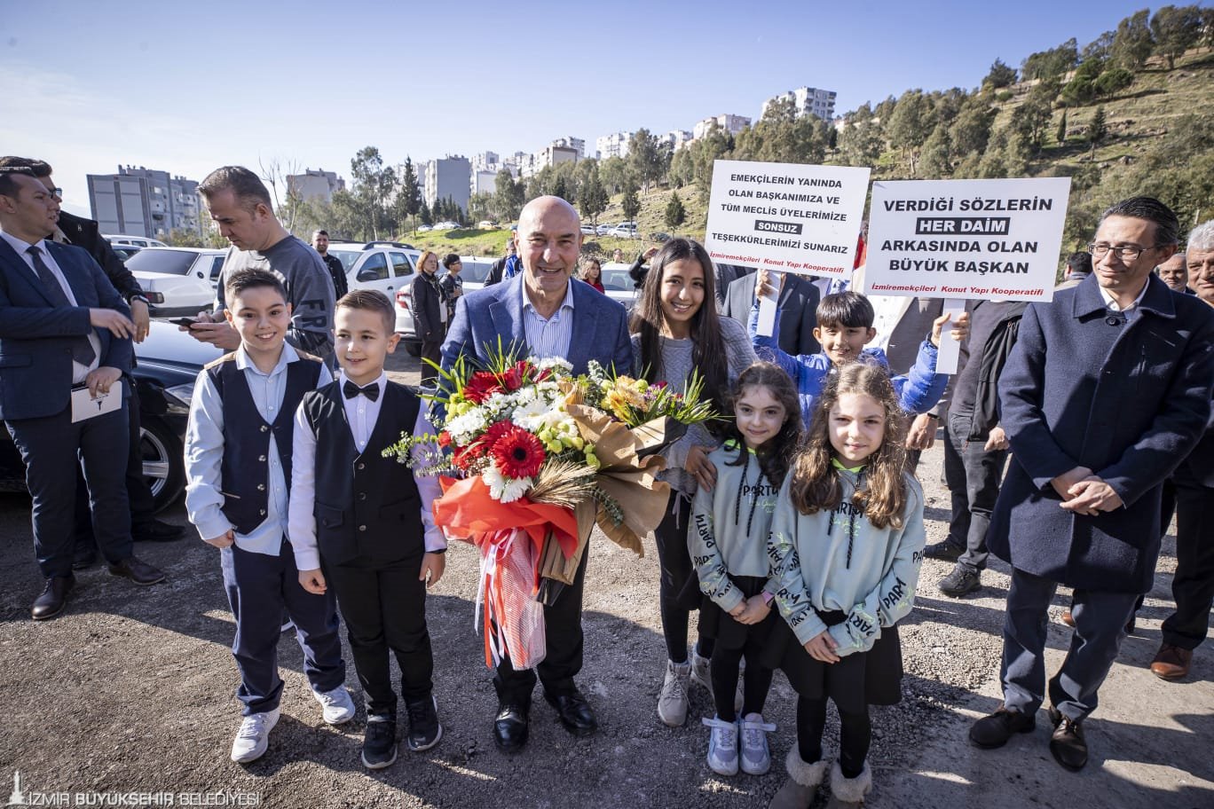Bu topraklardan bugünkü nesillere sadece kutuplaşma, eşitsizlik ve adaletsizlik kalmasının asla kabul edilemez olduğunu söyleyen Başkan Soyer, 'Biliyoruz ki bir arada olduğumuz müddetçe aşamayacağımız engel yok. Bu nedenle ulaşımda, geri dönüşümde, tarımda, kentsel dönüşümde, Halk Konut projesinde uyguladığımız kooperatifçilik modelini Ege Şehir Toplu Konut Projemize de taşıdık. Kooperatifçiliği yaşamımıza yeniden dahil ederek çok zor koşullara rağmen şehrimizin refahını büyütüyor ve adil paylaşımını sağlıyoruz. Göreceksiniz, bu ülkede yaşayan herkesin başı dik gezdiği bir geleceği hep birlikte kuracağız. Bir mucizeyi gerçekleştiriyoruz. Buraya gelirken böyle çok tatlı, hepsi birbirinden şeker çocuklarımız karşıladılar beni. Çiçekler verdiler. Onların kafalarını okşadım, sevdim ve şunu aklından geçirdim. İki buçuk sene sonra burada anahtarların teslimini yapacağız. Ve ondan sonra o çocuklar gençliklerini burada yaşayacaklar. Bu toplu konut tesislerimize bağlanan Yaşayan Park'ta doğayla buluşarak gençliklerini yaşayacaklar' diye konuştu.