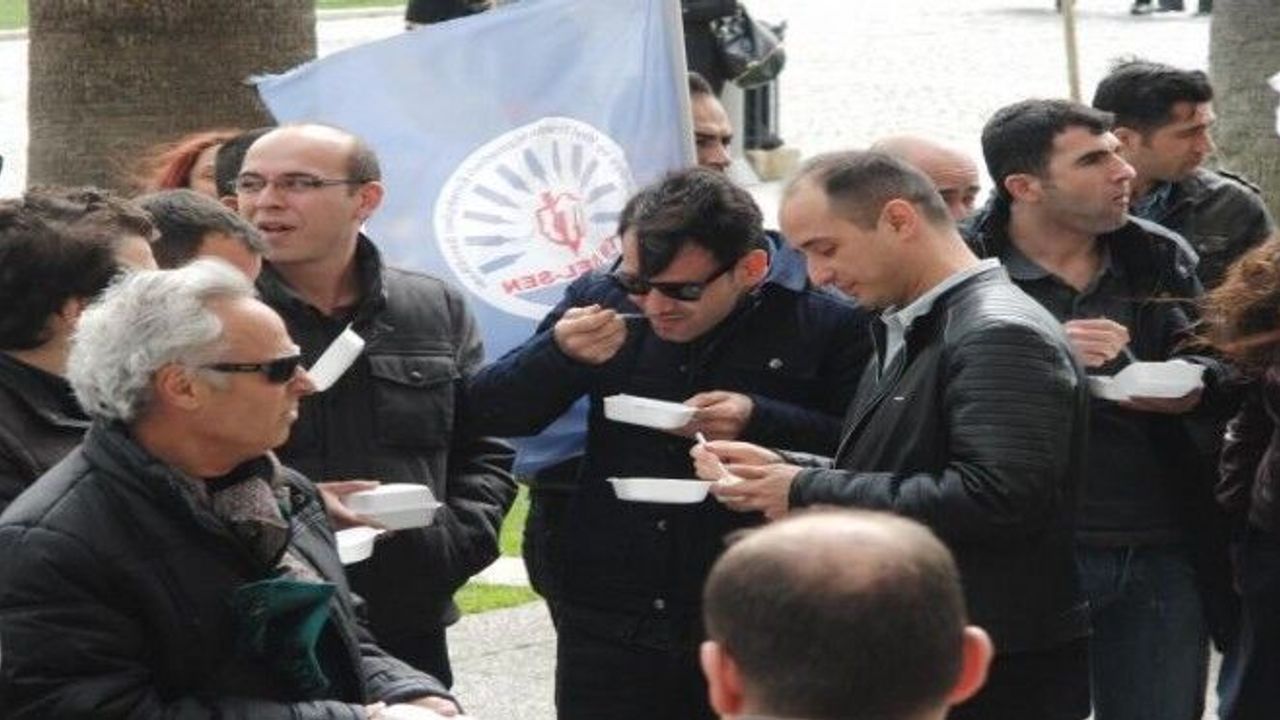 Tümbel-Sen 1 No'lu Şube Başkanı Ulus Bozkır, toplu sözleşme döneminde 'En az 300 TL'lik yemek kartınız tamam', 'İhale evrakı hazır, bugün yarın yemek kartınız cebinizde' propagandası yapıldığını ancak bir arpa boyu yol alınmadığını söyledi. Yerel-Sen'in de yemek yardımı konusunda Büyükşehir Belediyesi'nin adım atmadığını itiraf ettiğini belirten Bozkır 'Yemek sorununu yemekhaneler ya da yemek kartları ile çözen ilçe belediyeler kadar mali güce ve iradeye İzmir Büyükşehir Belediyesi sahip değil mi? Belediye yönetimi yemek yardımı meselesini bir hak değil de lütuf olarak mı görüyor? Bürokratlarla aralarının bir telefon kadar yakın olduğunu belirtenler ne oldu da mücadele etmeye karar aldı? Belediye yönetimi mi Yerel Sen'i kandırdı, yoksa Yerel Sen işverenle elbirliği yapıp çalışanları kandırdı?' dedi. Bozkır, yemek yardımı sorunu çözülmezse mücadeleye ve pilav dağıtmaya devam edeceklerini söyledi. (dha)