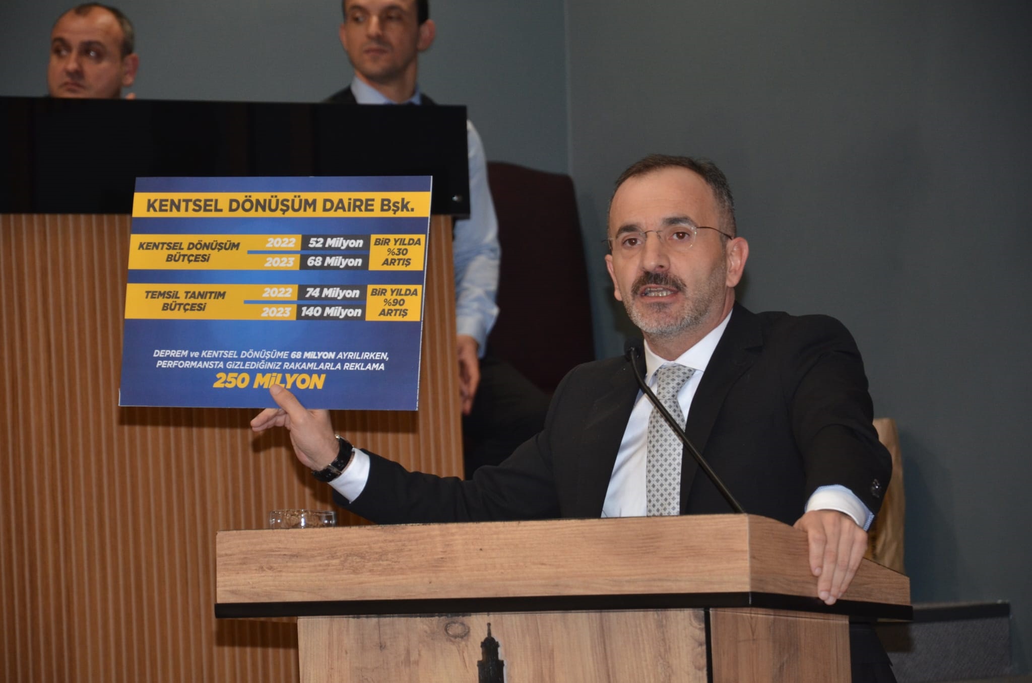Kentsel dönüşüme ayrılan cüretin yeterli olmadığını vurgulayan ve projeleri eleştiren Hızal, 'Kentsel dönüşüme de bir bütçe ayırıyorsun. Deprem İzmir'in en korkunç gerçeği. Depreme bakış açısı farklılığımız var. Geçmişte 'depremi si deprem olduğuna hatırlıyorsunuz' diyordum. Ancak siz onu da hatırlamıyorsunuz. Geçen günlerde Buca'da meydana gelen 4,9 büyüklüğündeki depremde hepimizin sokağa çıktık.Korktuk çünkü. İçişleri Bakanımız İzmir'de geldi 1 saat içinde. Bu kentin seçilmiş belediye başkanı bir paylaşım yaptı ve şato da oturmaya devam etti. Kentsel dönüşüm daire başkanlığının bütçesi 2022 yılında 52 milyon TL iken, bu yıl 68 milyon TL. Yüzde 30 artış var. temsil tanıtım bütçeniz 74 milyon iken 140 milyona çıkmış. Tek tek inceledim. Sizin reklam ayırdığınız bütçe 250 milyon. Kentsel dönüşüme ayırdığınız bütçe 68 milyon. Aslında 68 milyon bile değil. Yapmadıklarınız anlatmanız için bir reklam bütçenize ihtiyacınız var. Kentsel dönüşümde genel tablo bu. Sonra 'biz kentsel dönüşüme 2 milyar bütçe ayırdık' diyorsunuz. İzBB sizden önceki dönemde ağır aksak da olsa bir kentsel dönüşüm anlayışı hakimdi. Siz bütçe ayırmadığınzı için Aziz Bey döneminde belediye önünden geçemeyen kişilerle protokol yaptınız. Siz İZBB adını kullanarak İZBETON ile bir saadet zinciri kurdunuz. Örnekköy'ü kooperatife verdiniz. Yüzde 50 olması lazımdı, yüzd e5 seviyesinde. Kooperatif üyeleri kaçmaya başladı. Bunun hesabını İZBETON ve İZBB verecek. büyük bir vebal söz konusu. Gaziemir'de temel attığınızı iddia ettiğiniz alan ortada. Daha zemin iyileştirme çalışması bile yapamadınız. Hangi temelde bahsediyorsunuz? Gerçekten genel başkanınıza üzülüyorum. Her geldiğinde çakma temel atma törenleri ile adamı uyguluyorsunuz. İZBB Meclisi İZBETON'a yetki verdi ancak bu İZBETON hukuksuz şekilde kooperatiflere devrediyor dedik. sizlere adete yalvardık. Protokolü bize verin dedik. Sayın başkan ile bir araya geldik protokolü veririz sunum da yaparız dedi. Ancak birileri sayın başkanı da dinlemedi. Sonra protokole ulaştığımızda neden verilmediğini anladık. Metinde İZBETON bütün işlemlerde çift imza kullanmak zorunda deniliyor. Memura, işçiye para vermek için de çift imza gerekir denildi. Ancak protokollerde tek imza var.S akin ama sakın geçmişe dönük zorla bürokratlara imza attırmaya çalışmayın. Gerçekten çok yazık, çok üzülüyorum. 5 kuruş bütçe ayırmadığınız için kentsel dönüşüme sonuç bu oluyor. İZBB gibi köklü kuruluşunu hukuksuz iş ve işlemler yapmak zorunda kalıyorsunuz' dedi.
