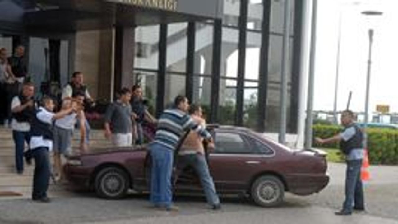 İZMİR - Alınan bilgiye göre, 15 yıl önce ESHOT'a ait bir belediye otobüsünün altında kalarak bir ayağını kaybeden oğlu Tolga Fidanboylu için belediye tarafından ödenen tazminattan kesinti yapıldığını iddia eden Hilmi Fidanboylu (41), oğlu ve iki arkadaşının da bulunduğu arabayla İzmir Büyükşehir Belediyesi başkanlık girişi önüne geldi.