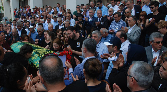 Cenaze büyükşehir belediyesi önünden üstüne kırmızı karanfiller konulan araçla alkışlar arasında Narlıdere Cem Evi'ne götürüldü.