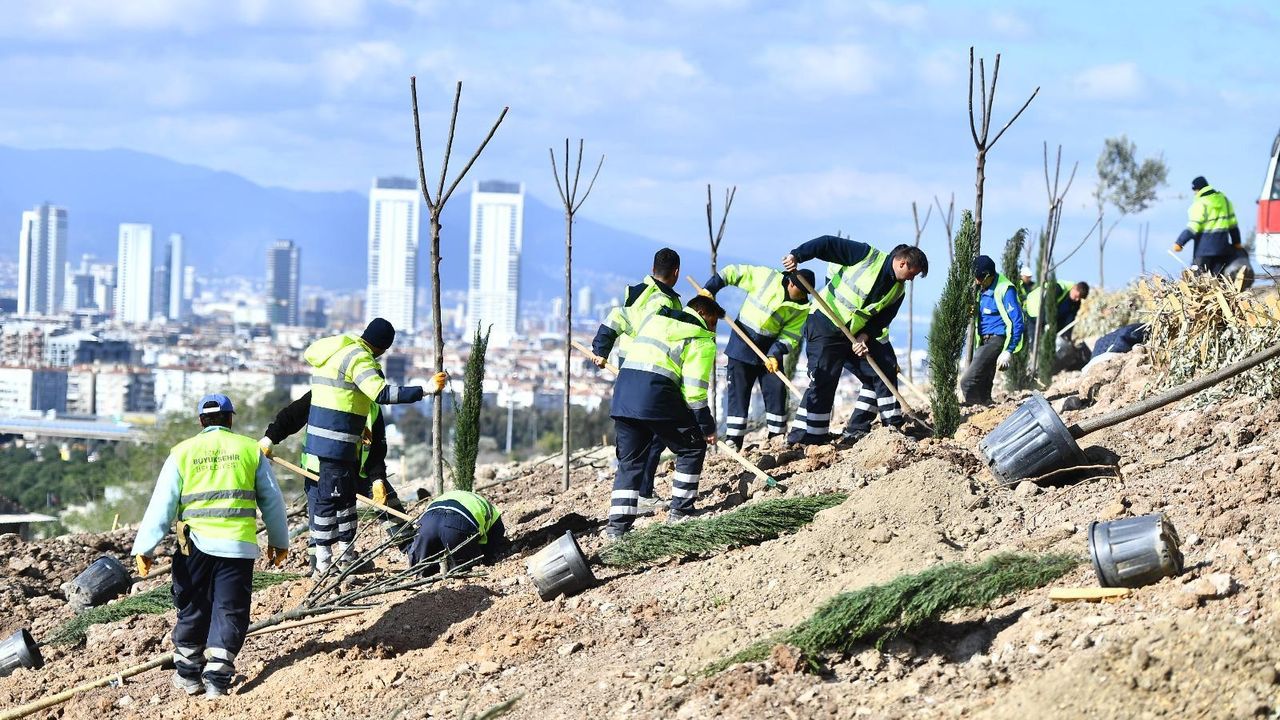 Başkan Tugay’ın kent genelinde başlattığı ağaçlandırma seferberliği kapsamında Bornova Aşık Veysel Rekreasyon Alanı’nın üst kısmında bulunan Kızılay Mahallesi’ndeki 23 bin metrekarelik arazinin 10 bin metrekarelik bölümünde ağaçlandırma çalışması yürütüldü. Böylece İzmir’in oksijeni artırılırken, boş alanda kaçak moloz dökümünün de önüne geçilmiş oldu. Öncelikle eğimi düşürerek su tasarrufu sağlayacak arazi hazırlıkları yapıldı ve dikim terasları oluşturuldu. İbreli ve yapraklı olan yalancı akasya, tespih, sofora, akçaağaç, kalem servi türlerinden toplamda bin ağaç dikimi gerçekleşti.