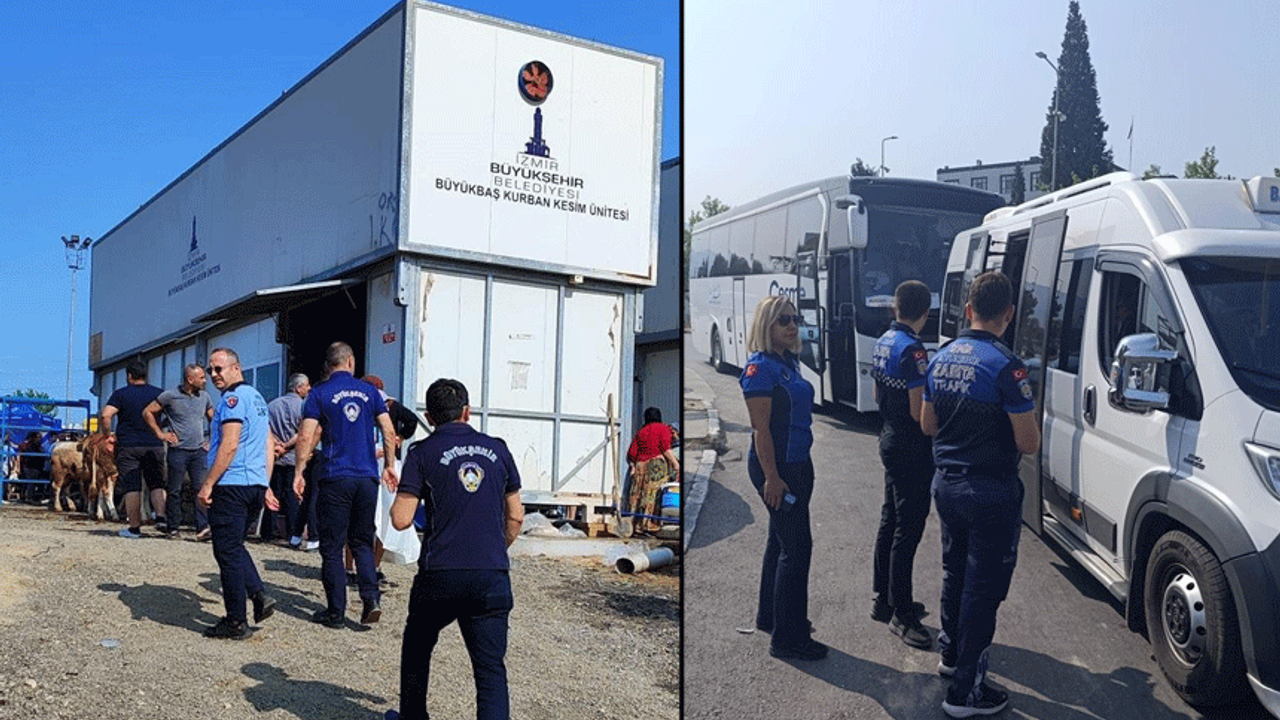 İzmir Büyükşehir Belediyesi Zabıta Dairesi Başkanlığı ekipleri, Kurban Bayramı’nda yurttaşların konforu ve güvenliği için çalışmalarını sürdürüyor. 400’e yakın personelle kent genelinde denetimlerini sıklaştıran ekipler, özellikle kurban satış ve kesim alanlarında olası sorunlara karşı önlem alıyor. Ekipler, izinsiz alanlarda kurban kesmeye çalışan vatandaşları kurban kesim alanlarına yönlendiriyor. İlçe belediyelerin zabıta ekipleri de Büyükşehir Belediyesi Zabıta Dairesi Başkanlığı ekiplerine destek oluyor. Yasaklanmış yerlerde kesim yapanlara Kabahatler Kanunu uyarınca 1406 TL para cezası uygulanıyor.