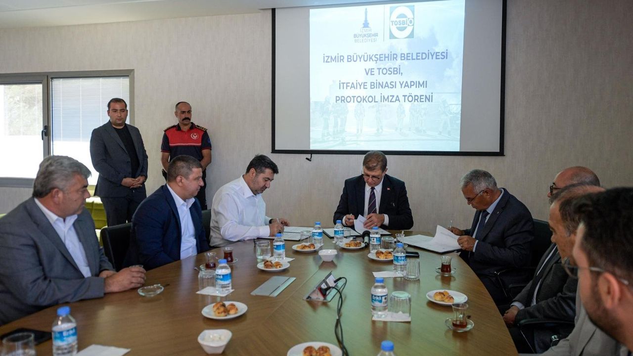 Olası yangınlara, afetlere hızlı ve etkili şekilde müdahale etmek için İzmir Büyükşehir Belediyesi ve sanayicilerin iş birliği ile organize sanayi bölgelerinde itfaiye istasyonları oluşturulmaya devam ediyor. İzmir Büyükşehir Belediye Başkanı Dr. Cemil Tugay, Tire Organize Sanayi Bölgesi (TOSBİ) Yönetim Kurulu Başkanı Kosat Gürler ve TOSBİ Müteşebbis Heyeti Başkanı Metin Akdaş ile Tire Organize Sanayi Bölgesi’ne İtfaiye Grubu kurulması için protokol imzaladı. Törene Tire Belediye Başkanı Hayati Okuroğlu, Büyükşehir Belediyesi bürokratları ile iş dünyasının temsilcileri katıldı. TOSBİ’nin yapacağı itfaiye hizmet binasında görev alacak hizmet araçları ve personel Büyükşehir Belediyesi tarafından temin edilecek.