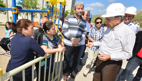 Konutlarda oturan vatandaşlarla görüşen Başkan Kocaoğlu, yoldaki kaymayı önlemek amacıyla 'acilen' ihaleye çıktıklarını hatırlatarak 'Biz yasal sınırlarımız içerisinde, kaymanın meydana geldiği yeri sağlamlaştırıp istinat duvarı yapıyoruz. Ancak Toplu Konut İdaresi Başkanlığı'nın (TOKİ) yaptığı konutlara müdahale etmemiz mümkün değil. Konutlarla ilgili çalışmalar TOKİ tarafından yapılacaktır' diye konuştu.
