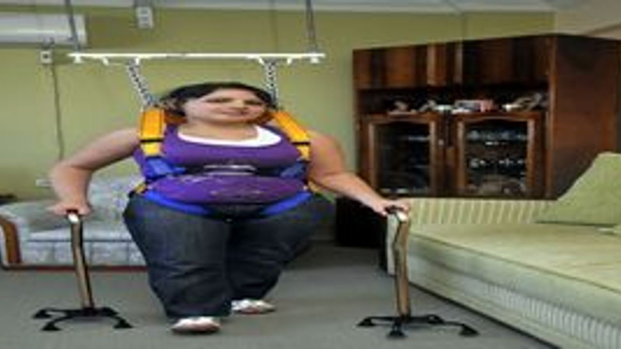 ''Ayağa kalkamayacağım için önce yükselebilen, hareket edebilen bir koltuk yaptık. Ona bağlı, yüksekliği ayarlanabilir demirler üzerinde, belimde beni tutan bir kemerle egzersiz yapmaya başladım. Adım atma provaları yaptım. Boşlukta yürüyormuş gibiydi. Bir süre sonra kendimi hazır hissettiğimde demirleri aşağıya doğru biraz indirerek, ayağımı yere basmaya başladım. Belimdeki kemer düşme riskimi ortadan kaldırdığı için kendimi güvende hissediyordum. Bu sürede doktorlar kas ve kemiklerimin geliştiğini söyledi. 6-7 ay sonra tek başıma, yürüteçler yardımıyla adım attım.''