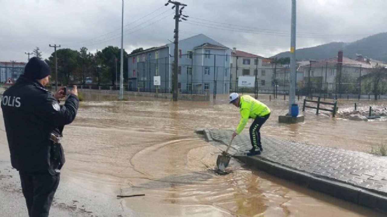 İlçe Emniyet Müdürlüğü ekipleri, su altında kalan yolları güvenlik gerekçesiyle trafiğe kapattı.