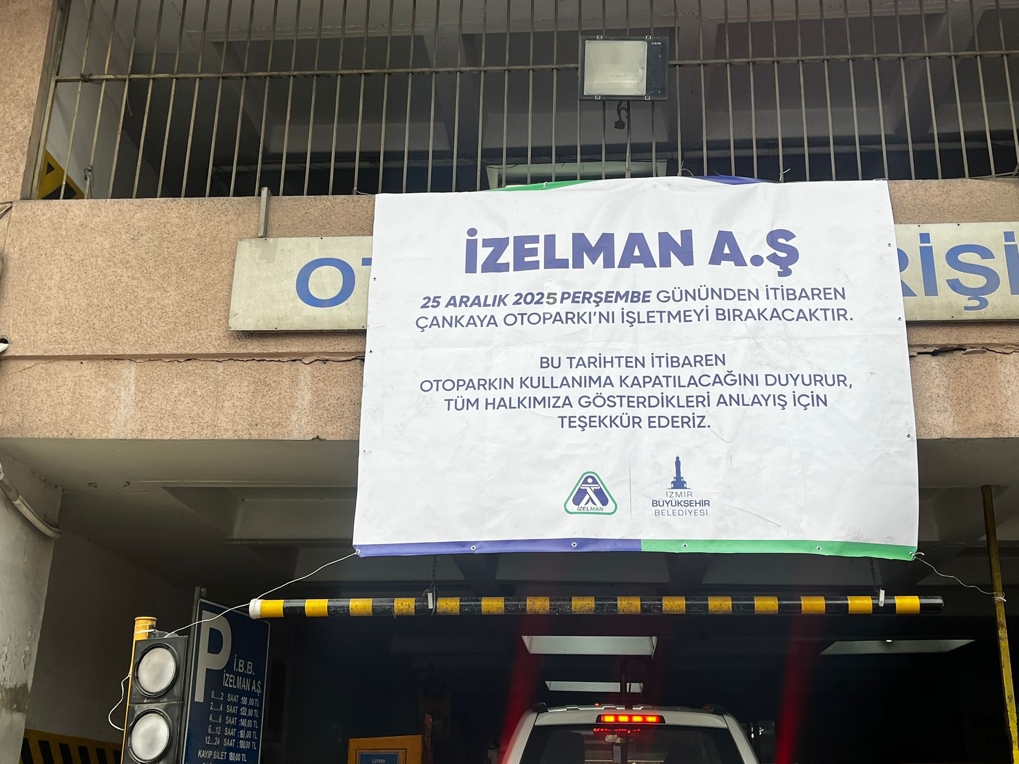Bu otoparkı işleten Büyükşehir Belediyesi’ne bağlı İZELMAN şirketi, Vakıflar Genel Müdürlüğü ve Ziraat Bankası’nın da ortak olduğu katlı otoparkın girişine bir afiş asarak, otoparkın bugün itibariyle kullanıma kapatıldığını açıkladı.