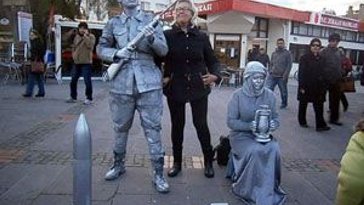 Gösteri Sanatları Atölyesi grup yöneticisi Tuncay Ağca, 2008 yılında çalışmalara başladıklarını, 2010 yılında Gösteri Sanatları Atölyesi'ni kurduklarını belirtti. Ağca, İzmir sokaklarını sanatla aydınlatmayı amaçladıklarını kaydetti. Grubu eşiyle birlikte kurduğunu vurgulayan Tuncay Ağca, 'Yurt içi ve yurt dışındaki festivallerde sokaklarda gösteri yapıyoruz. Ülkemizi, İzmir'i temsil ediyoruz. Her gittiğimiz yerde büyük ilgi görüyoruz. Toplam 20 kişilik bir grubuz. Farklı konularda konseptleri, gündeme uygun mesajları vermeye çalışıyoruz. Efe, Kanuni - Hürrem, Rembetiko gibi canlı heykeller, pandomim gösterileri ve bazı kısa oyunlarla halkın karşısına çıkıyoruz. Finansmanı sokaklarda halkın bahşiş ve bağışlarından sağlıyoruz. Belediye ya da başka kurumlardan hiçbir desteğimiz yok. Kullandığımız vücut boyası Almanya'dan geliyor. Kostümlerimizi özel diktiriyoruz. Bu koşullarda sokaklardan topladığımız ücretlerle sanatımızı yapmaya ve ilerletmeye çabalıyoruz. Sadece duvarlar arasında değil, sokakta da sanat yapılabileceğini gösteriyoruz' dedi.(dha)