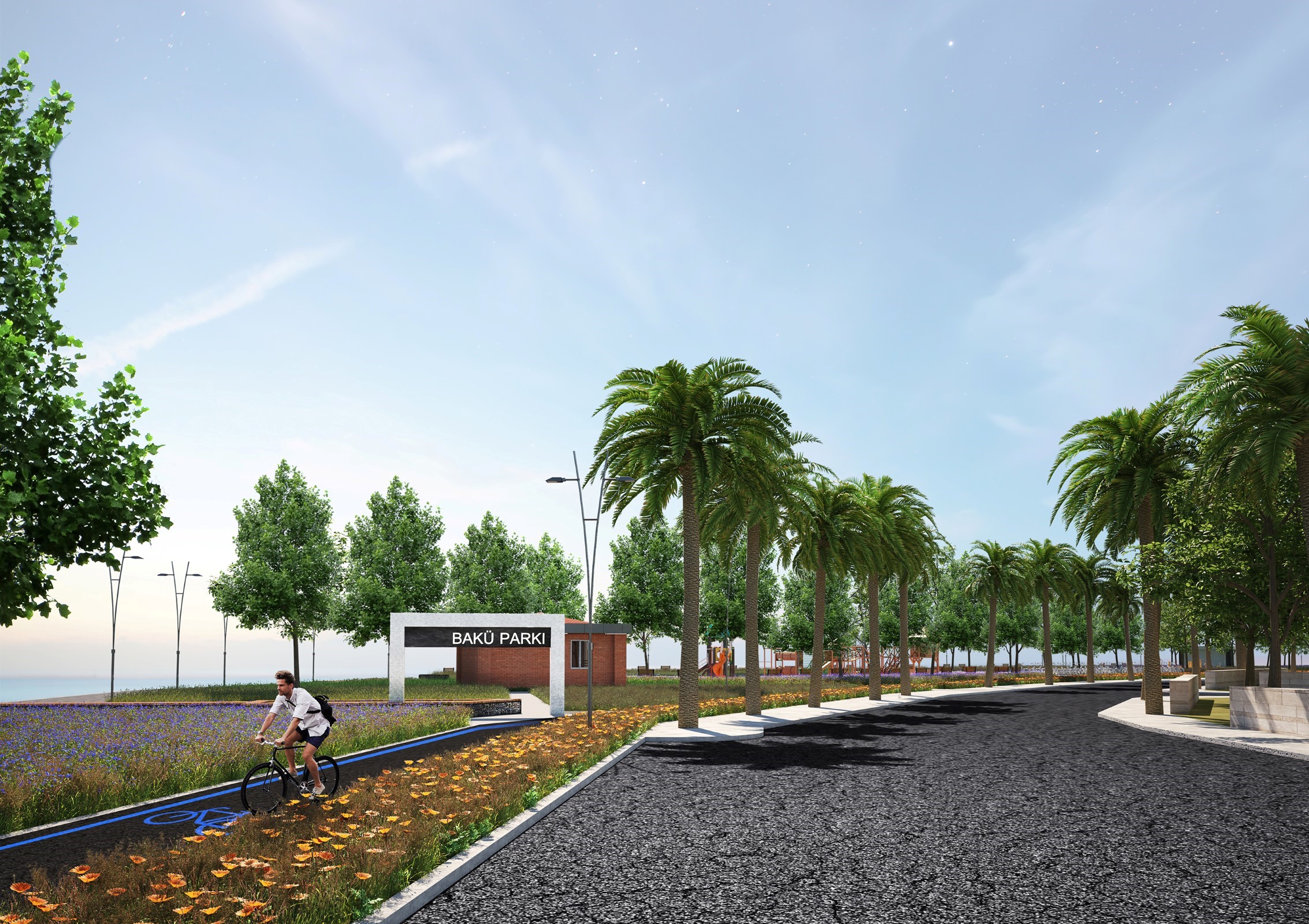 Bakü parkının da içinde bulunduğu Sahilevleri ikinci etap düzenlemede deniz tuzuna ve rüzgara dayanıklı her zaman yeşil kalan ardıç, ılgın, iğde, defne ile renkli çiçekleri olan gazania, kazayağı gibi yüzey örtücüler ve zakkum, gaura, berberis, kuşdili, lavanta gibi renkli çalı grupları kullanılacak. Mavi ile yeşilin buluştuğu bu düzenlemede, birinci etapta olduğu gibi İzmir Heykel Çalıştayı eserlerinden biri kullanılacak.