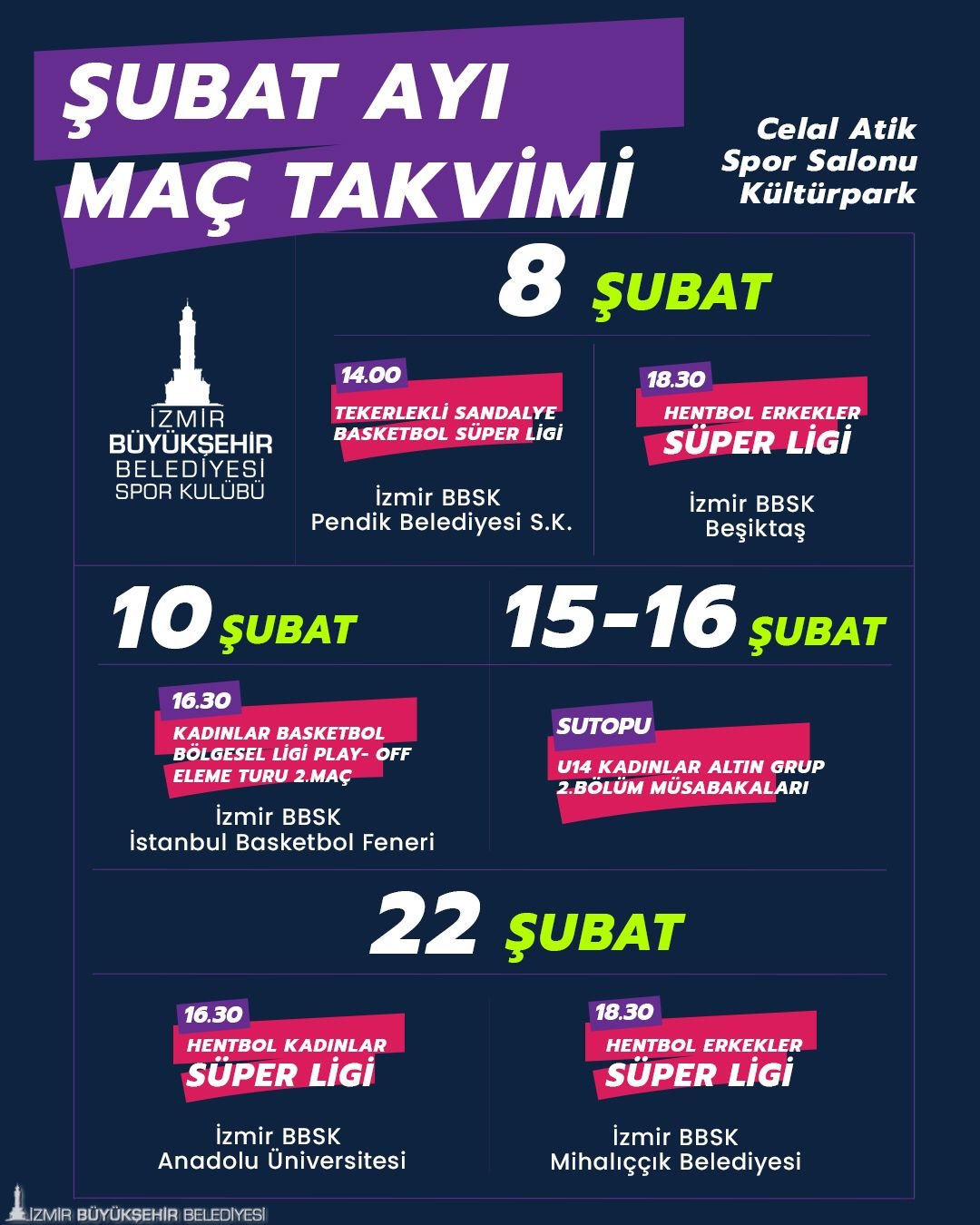 Trabzon ve Ankara deplasmanlarından döndükten sonra ligin son iç saha maçında 22 Şubat Cumartesi günü Anadolu Üniversitesi’ni ağırlayacak kadın hentbol takımı ise ligi ilk 8 arasında tamamlayarak play-off’a ve Avrupa Kupalarına katılma şansını sürdürmek istiyor. Sporseverler 22 Şubat Cumartesi günü saat 16.30’da başlayacak İzmir Büyükşehir Belediyesi - Anadolu Üniversitesi kadın hentbol maçının hemen sonrasında oynanacak İzmir Büyükşehir Belediyesi - Mihalıççık Belediyesi erkek hentbol maçını da ücretsiz izleyebilecek.