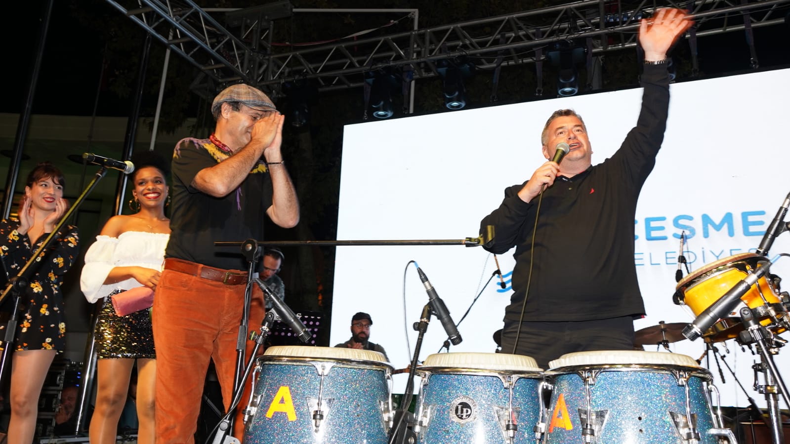 Bolero'lar, salsa'lar, caca'lar ve özel sürprizleriyle Çeşmeliler'i coşturan Ayhan Sicimoğlu, Çeşme Belediye Başkanı M. Ekrem Oran'a teşekkür ederek; 'Hastasıyız Eko Başkan' dedi.