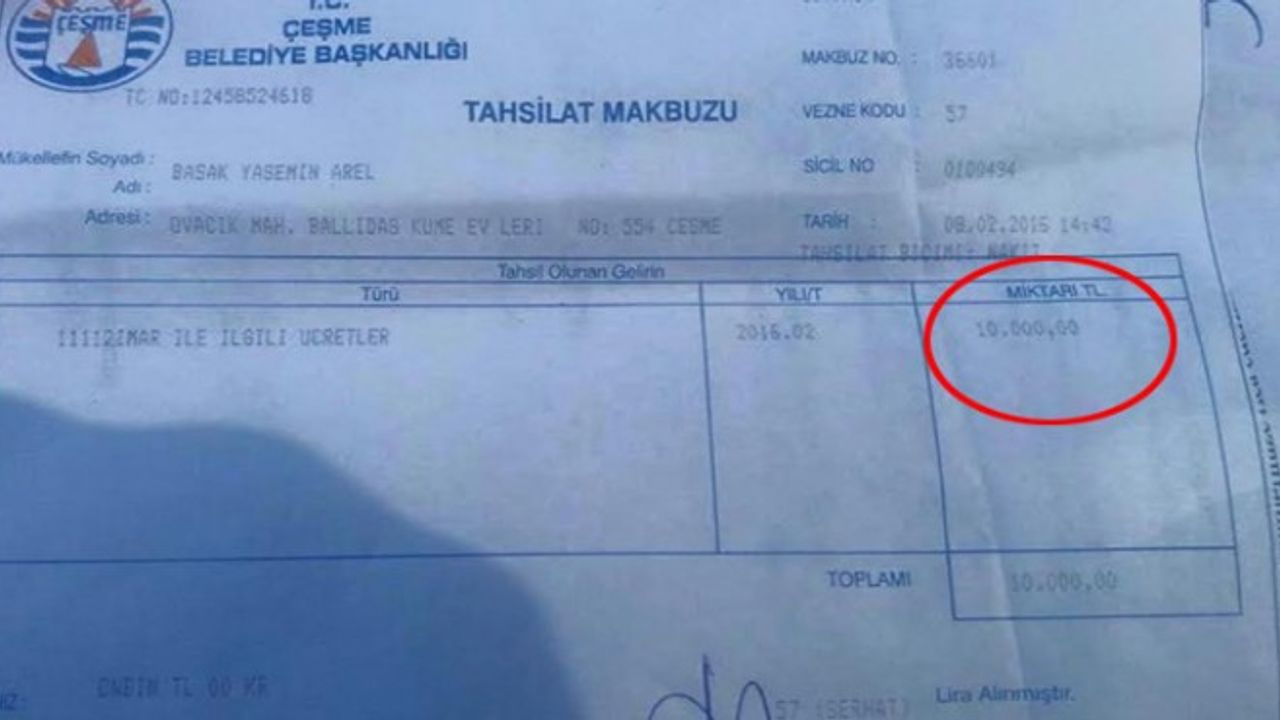 Fotokopileri almak için belediyeye giden Arel'e, 16 sayfa için 10 bin TL tutarında fatura kesildi.