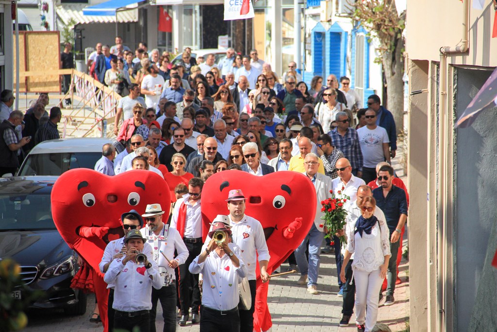 Dalyan mahallesi sokaklarındaki Bando 35 müzikleri eşliğinde gerçekleştirilen kortej yürüyüşü sırasında esnafa ve vatandaşlara kırmızı güller dağıtıldı. Dalyan sahilindeki balık restoranlarının önündeki yolun kırmızı balonlarla kalp şeklinde süslenmesi, her restoranın önündeki kalp şeklinde giysiler giymiş animatörler, Aşk Festivali'ne renk katarken, vatandaşlar hatıra fotoğrafları çekilmek için adeta yarıştılar.