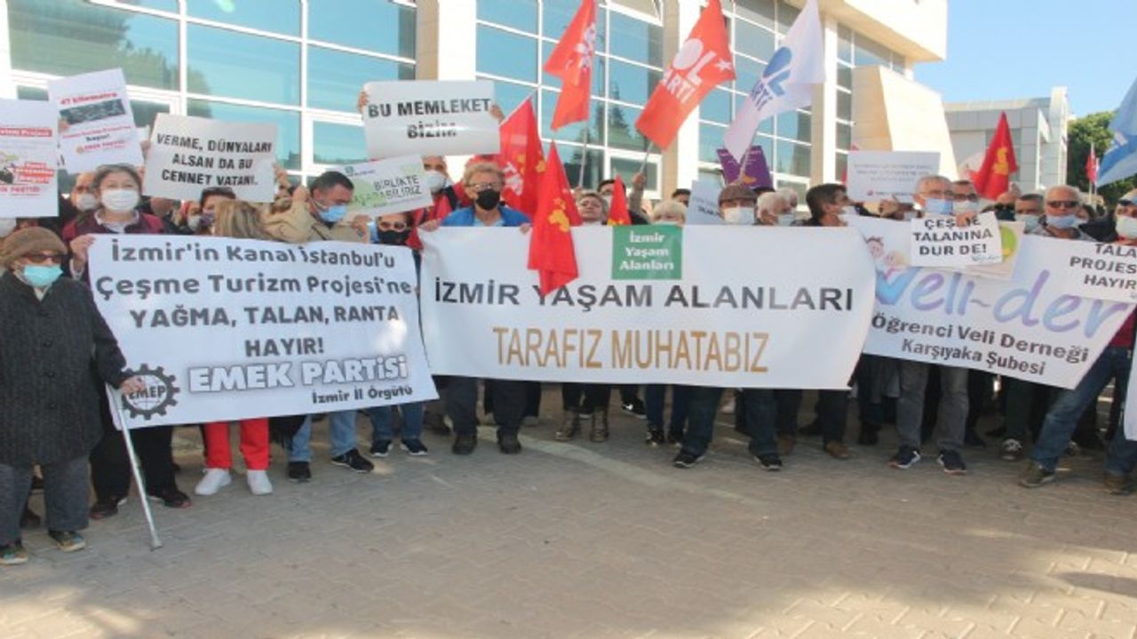 Meslek odaları, çevre örgütleri, sivil toplum kuruluşları, kent konseyleri ve siyasi partilerin çağrıları ile biraya gelen vatandaşlar da ilk olarak Çeşme Adliyesi önünde ardından Alaçatı Sazlığında buluştu. İzmir Büyükşehir Belediye Başkan Vekili Mustafa Özuslu ve İzmir Büyükşehir Belediye eski Başkanı Aziz Kocaoğlu da Çeşme Adliyesinin önüne geldi.