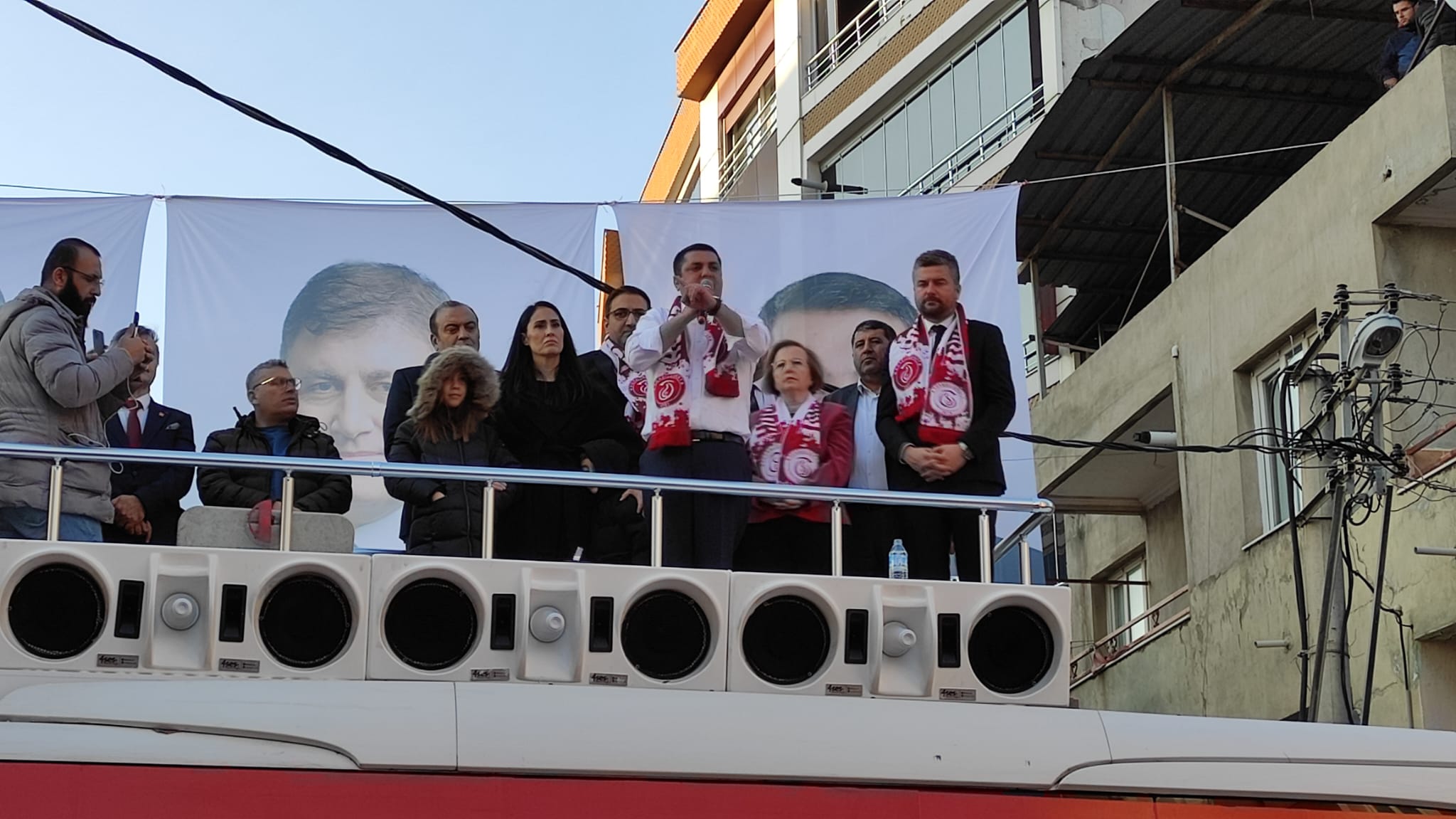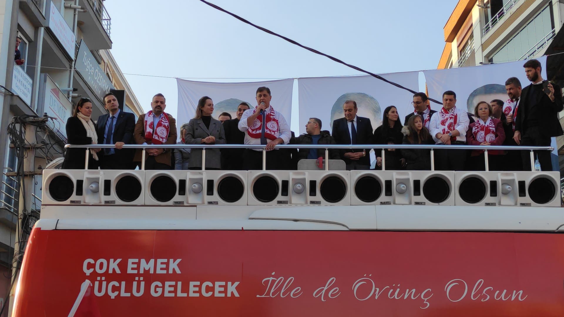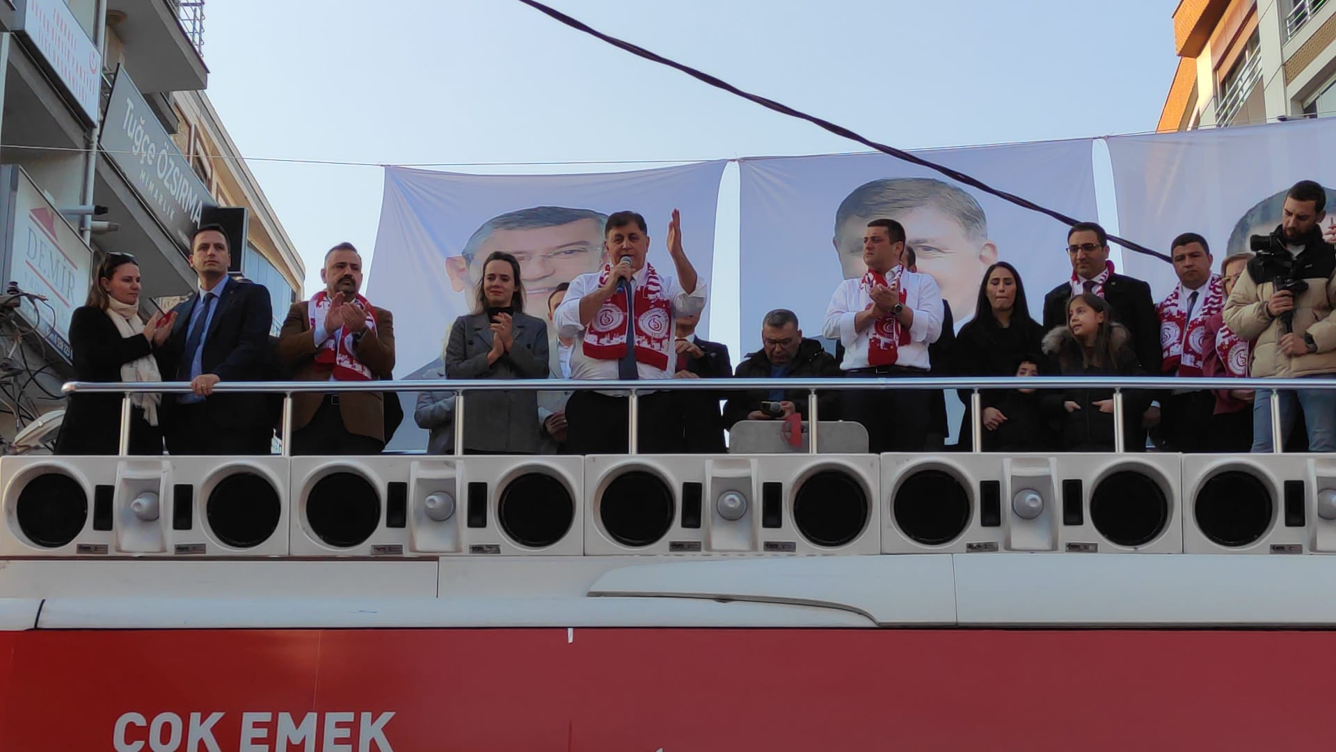 CHP İzmir Büyükşehir Belediye Başkan Adayı Dr. Cemil Tugay ilk mitingini Torbalı'da gerçekleştirdi. Tugay, CHP Torbalı Belediye Başkan Adayı Övünç Demir ile parti otobüsüne çıkarak kalabalığa seslendi.