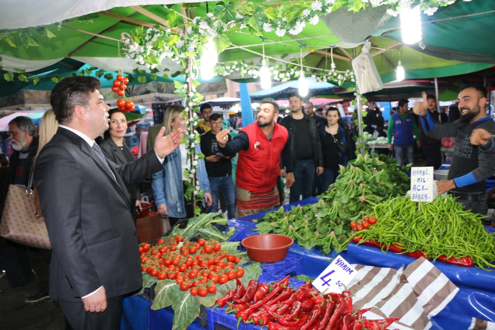 CHP Buca Belediye Başkan Adayı Erhan Kılıç, seçim çalışmaları kapsamında Buca'daki semt pazarlarında vatandaşları ve pazarcı esnafını ziyaret etmeye devam ediyor. Pazar turunda vatandaşların sorunlarını dinleyen Erhan Kılıç, Buca'da gerçekleştireceği İyi Tarım projesini, halka tanıttı.