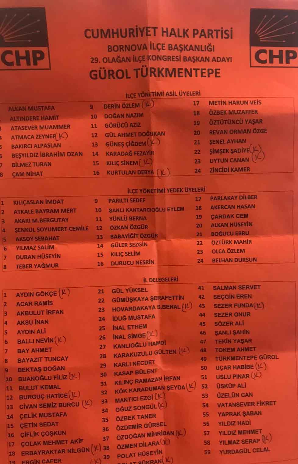 İl delegeleri listesi: Güven Akkın, Necla Birinci, Mehmet Ecevit Canbaz, Fethiye Çalış, Ümit Nuri Çiftçi, Cavit Demirci, Gökay Kartalkaya, Veli Kiraz, Özgül Özçakmak, Olgu Öztürün, Seçkin Neşe, Ercan Sevinç, Ahmet Ülker