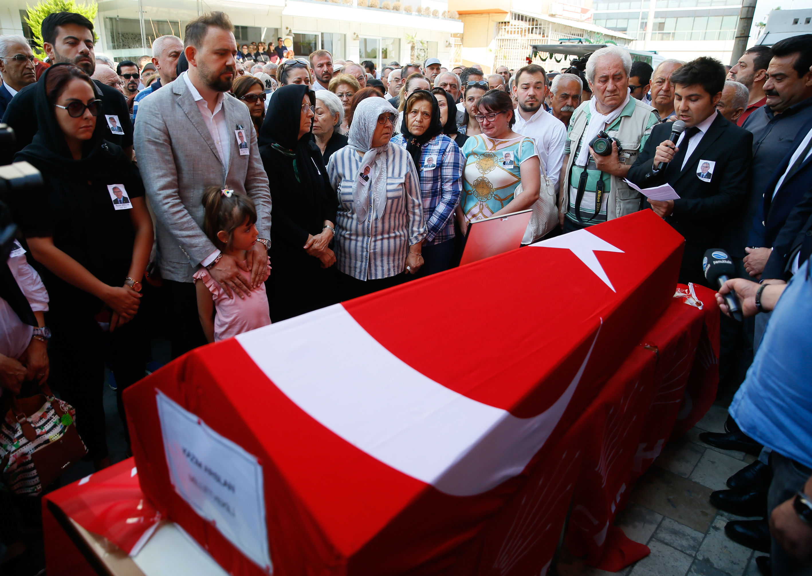 Arslan'ın cenazesinin bulunduğu Türk bayrağına sarılı tabutun getirildiği bina önünde eşi Nursel, kızı Nazife, oğlu Mesut Can Arslan ile akrabaları, milletvekilleri, partililer ve sanatçı Müjde Ar'ın da aralarında olduğu sevenleri bir araya geldi.