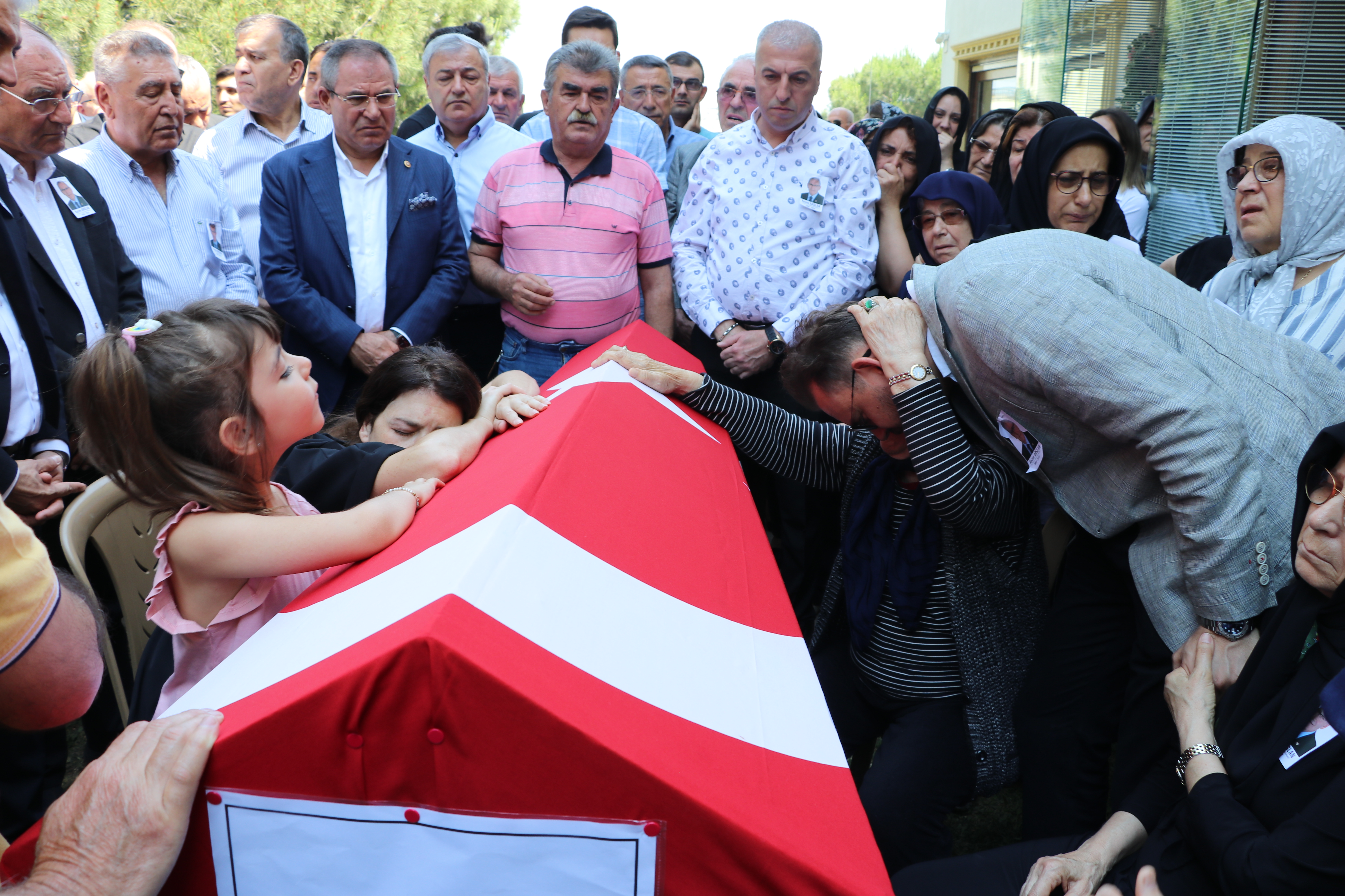 Evin bahçesinde kızı, eşi ve kayınvalidesi tabuta sarılarak, gözyaşı döktü.