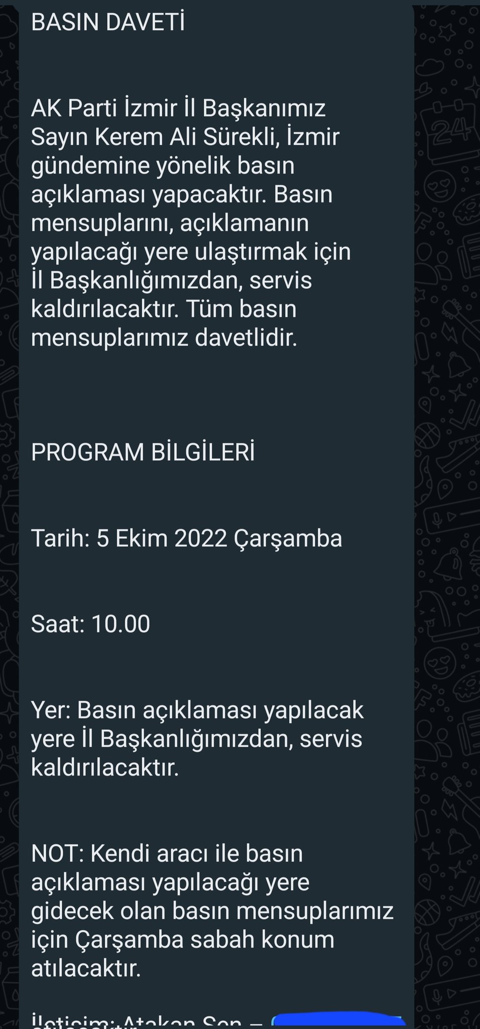 Ayrıca AKP İl Başkanlığı'nın kurduğu tezgahı da ifşa etmek gerek. Güya basını davet ediyorlar. 'Yer: Basın açıklaması yapılacak yere İl Başkanlığımızdan, servis kaldırılacaktır.' Var mı buna bir açıklamanız?