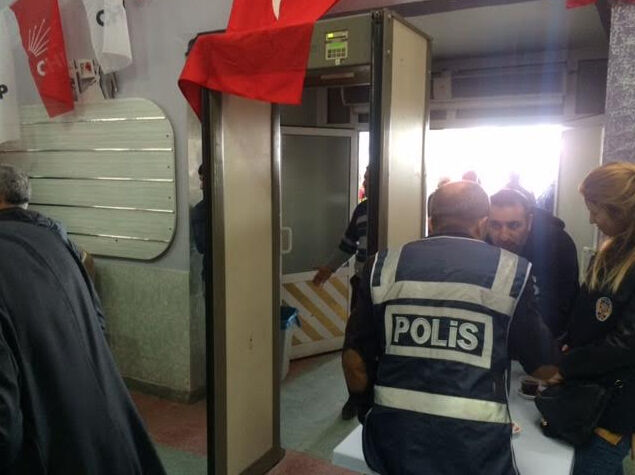 Geniş güvenlik önleminin alındığı Elit Düğün Salonu'ndan X-Ray cihazından geçerek salona giriş yapıldı. İlçe Başkanlığı tarafından talep edilen X-Ray cihazından tek tek alana gelenler tarandıktan sonra girişe izin verildi.. Ayrıca salonda adayların astıkları pankartlar dikkat çekti. Utku Gümrükçü'nün 'Türkiye'de Kılıçdaroğlu, Çiğli'de Gümrükçü' yazılı pankartı bulunurken, Zeynel Mertoğlu'nun 'Parti içi barış, parti dışı yarış' pankartı bulundu.