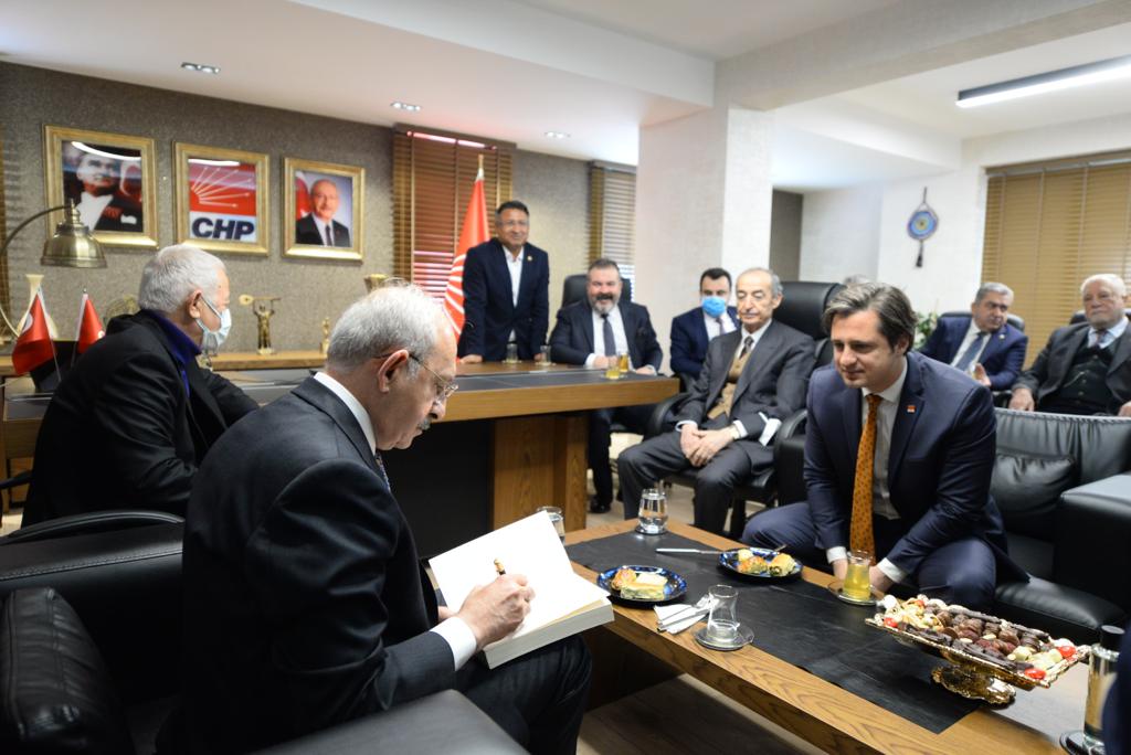 Cumhuriyete Halk Partisi Genel Başkanı Kemal Kılıçdaroğlu, CHP izmir İl Başkanlığı kütüphanesinde yer alan, kendisinin seçme yazılar ve konuşmalarından oluşan 'Kemal Kılıçdaroğlu Özgür ve Adil Bir Türkiye İçin Yürüyüş' isimli kitabını da imzaladı.