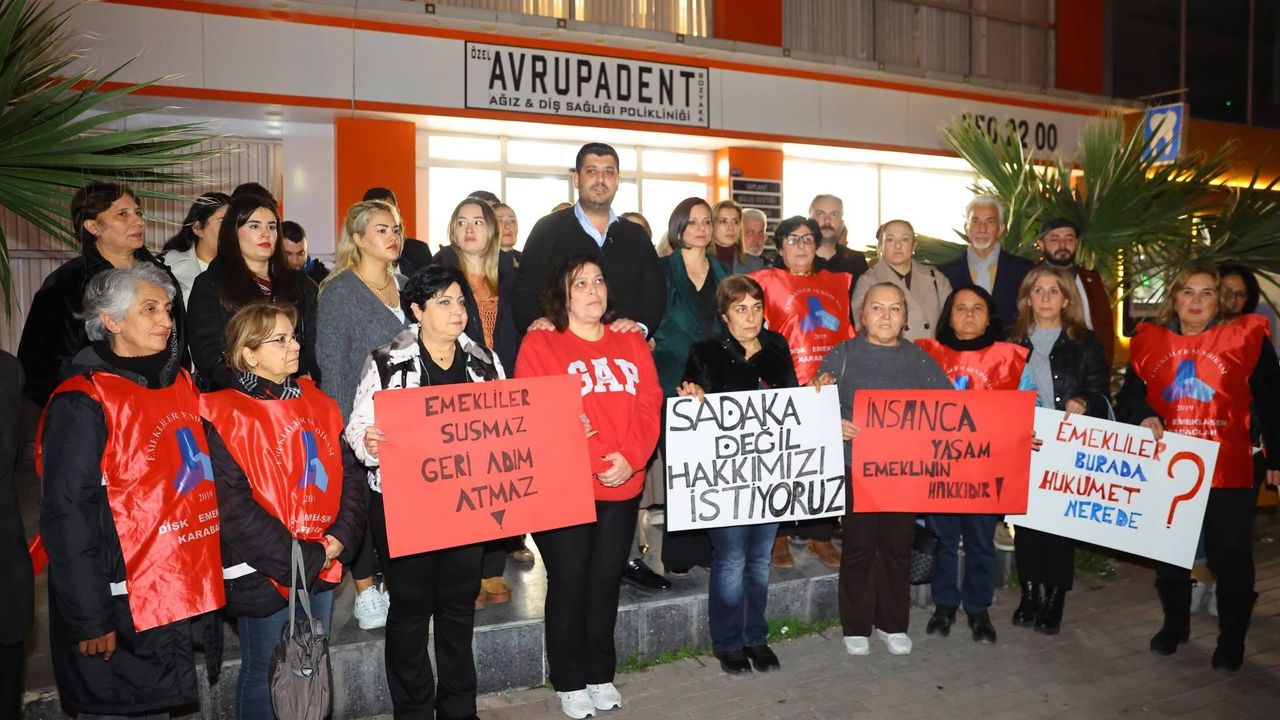 Nöbette konuşan CHP’li Volkan Gürboğa, “Bugün burada, Cumhuriyet Halk Partisi Karabağlar ilçe binamızda, emeklilerimizin haklı feryadına ses olmak için bir aradayız. Bugün burada tuttuğumuz nöbet, bir siyasi gösteri değildir; bu nöbet, geçinemeyen emeklilerin, boş tencerelerin, ödenemeyen faturaların nöbetidir. İktidar tarafından açıklanan emekli maaş artışları, ne hayatın gerçeklerine ne de emeklilerimizin yaşadığı ağır yoksulluğa uygundur. Bu artışlar zam değil, yoksulluğun kalıcı hale getirilmesidir. Bugün en düşük emekli maaşıyla; kira ödemek mümkün değil, mutfak masrafı karşılanamıyor, ilaçlar bile alınamıyor. Emekliler pazarda fileyi değil, fiyat etiketlerini dolduruyor. Emekliler torununa harçlık veremiyor, sofrasına et koyamıyor. Buna rağmen iktidar, rakamlarla oynayarak “zam yaptık” demeye devam ediyor” dedi.