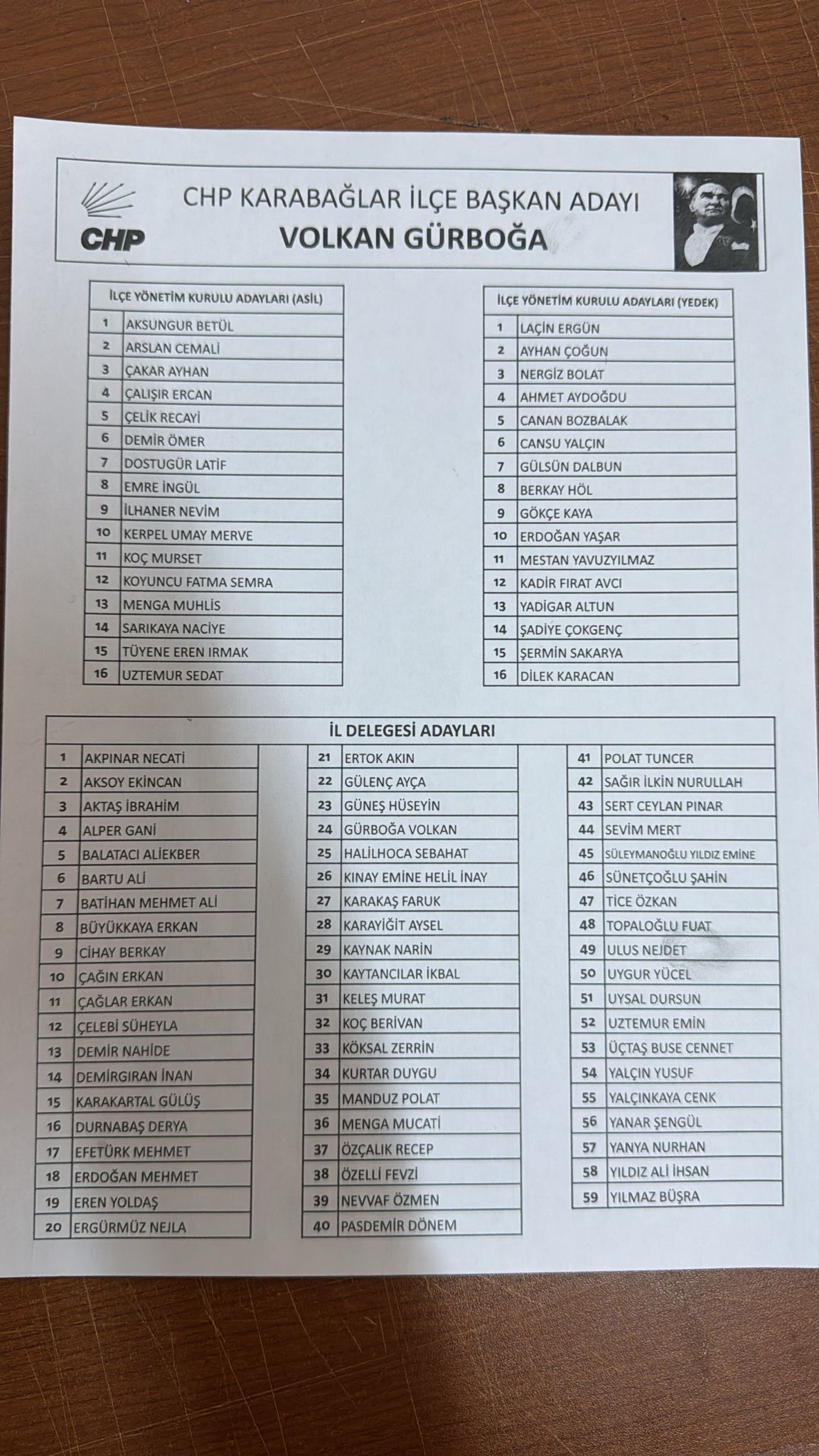 Gürboğa’nın listesine Aksoy’un yanı sıra YDK Üyesi Özkan Tice, Karabağlar Belediye Başkanı Helil Kınay girdi.