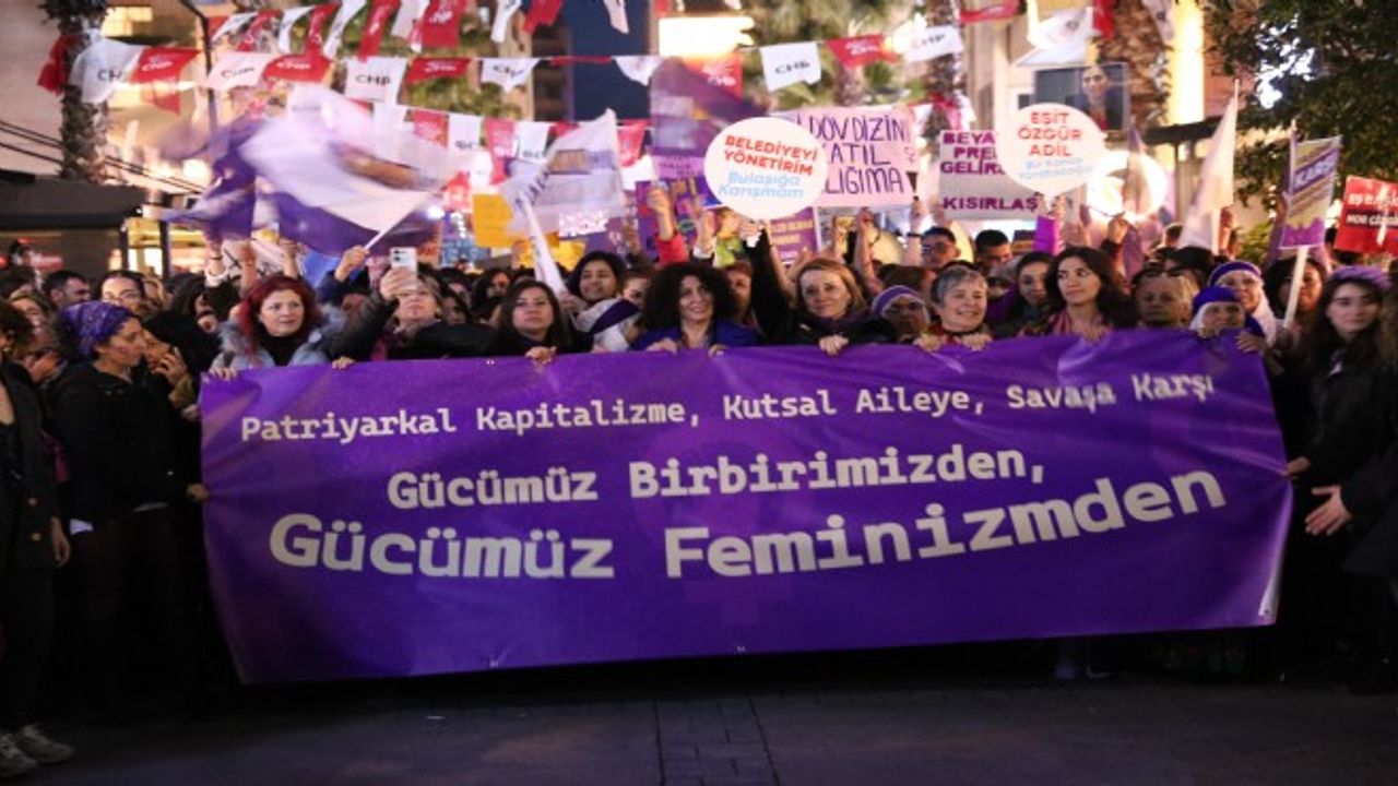 Başkan Adayı Mutlu, daha sonra DİSK Genel İş Sendikası İzmir Kadın Komisyonları tarafından Kıbrıs Şehitleri Caddesi boyunca düzenlenen yürüyüşe katıldı. 'Şiddete, sömürüye, yoksulluğa karşı sokaklardayız' yazılı pankartın arkasında yürüyen Mutlu, 'Yaşasın kadın dayanışması', 'Susmuyoruz korkmuyoruz itaat etmiyoruz' ve 'Dünya yerinden oynar kadınlar özgür olsa' sloganlarına eşlik etti.
