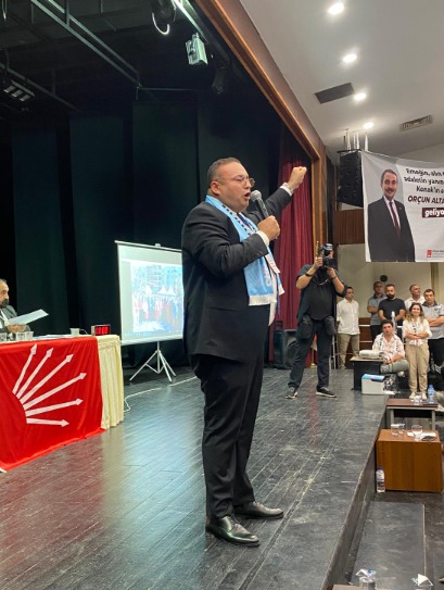 Konak’ta geçmiş dönemlerde gençlik kolları başkanlığı yapan beyaz listenin adayı Orçun Altanhan adaylık konuşmasında, “Bu salonda bulunan herkes farkında olduğu gibi memleketin durumu içler acısı halde. Halkımızın çoğu temel gıda maddelerini almakta zorlanıyor. Muhalifler içeri atılıyor. Tarikatların devletin tüm kurumlarına sızdığı ortamdayız. Ormanlar cayır cayır yanıyor. Gençler iş bulamıyor. Biz gençler bunu kabul etmiyoruz. İsyan ediyoruz. Değişecek bu düzen gidecek bu tiran. Bugün burada sadece kongre yapmıyoruz. Zamanı gelen değişimin ve yeni dönemde kurulacak kadroları seçmek için buradayız. Bu değişimin öncüsü Genel Başkanımız önderliğinde kongre salonundan çıktığımızda sokaklarda çalışmaya başlayacağız. Bu mücadele iyilikle kötülüğün mücadelesi. Bu mücadele ezen ve ezilenlerin mücadelesi. Hem devlet hem millet zordadır. Atatürk’ün partisi kayyumlarla yönetilemez. Ablukayı dağıtır, zincirleri kırarız düzeninizi başınıza yıkarız. Gittiklerinin farkındalar. Bölünmüş bir CHP hayali kuruyorlar. Bu örgüt buna müsaade etmez. Yola çıkarken arkama bir belediye başkanı alır mıyım diye hiç düşünmedim. Arkama bir genel başkan yardımcısı alır mıyım diye düşünmedim. 23 yaşında gençlik kolları başkanı adayı olduğumda sırtımı örgüte yasladım” ifadelerini kullandı.