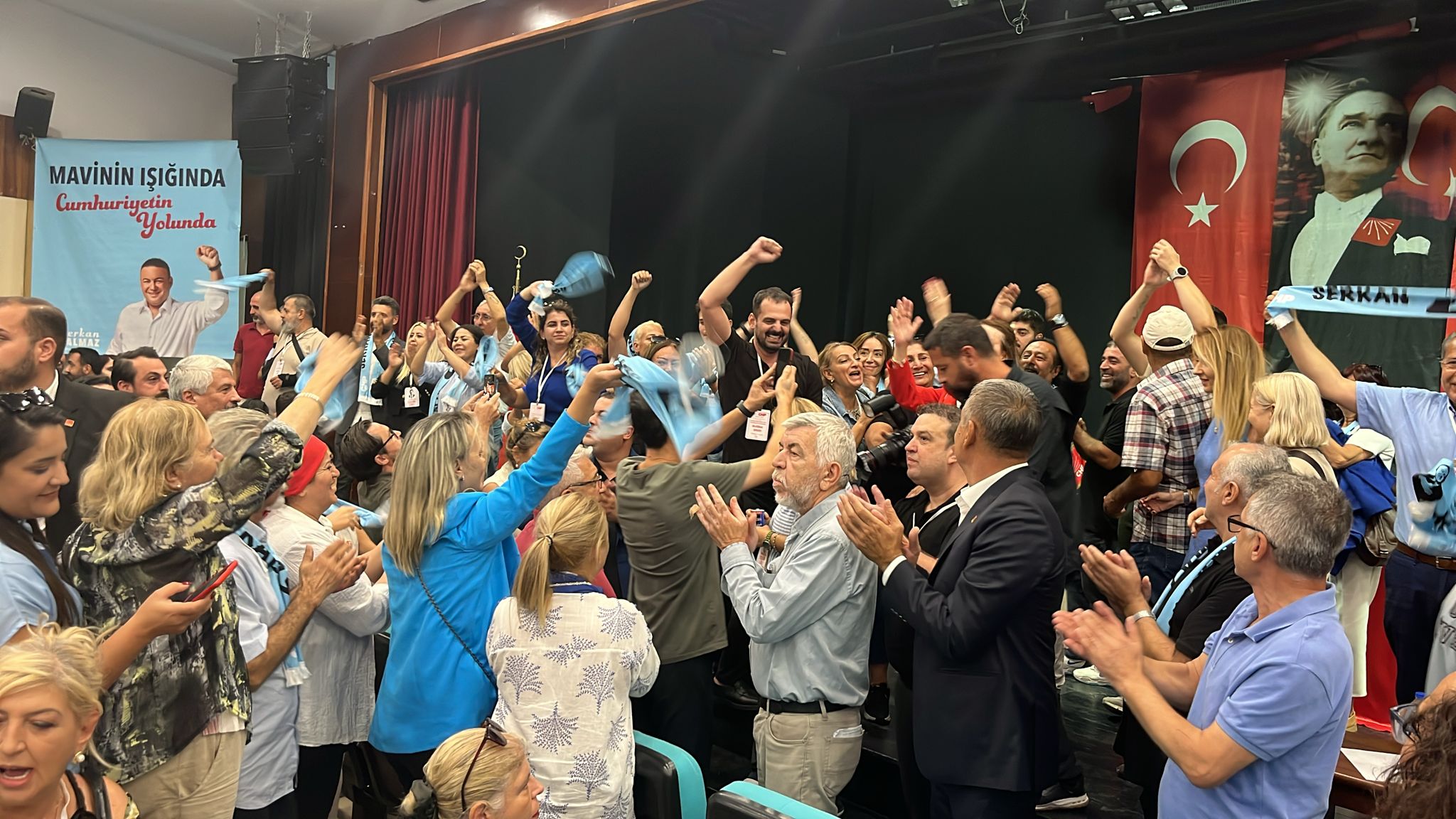 Serkan Kalmaz, mavi liste ile seçime katıldı. Konak Belediye Başkanı Nilüfer Çınarlı Mutlu da Kalmaz'ın mavi listesinde yer aldı.