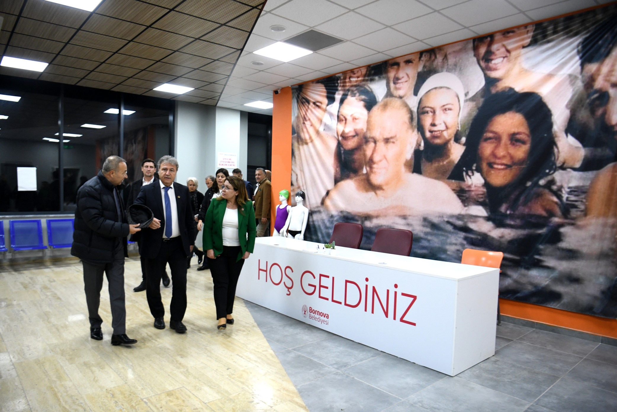 Bornova Belediyesi'nin Çamdibi'nde hayata geçirdiği örnek projelerden biri olan ve spor salonunu yerinde inceleyen Genel Başkan Yardımcısı, Bornova'da vatandaşa hizmet odaklı yapılan çalışmaları çok beğendiğini dile getirdi.