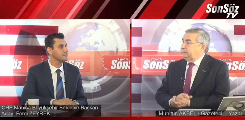 EGEDESONSÖZ – Cumhuriyet Halk Partisi Manisa Büyükşehir Belediye Başkan adayı Ferdi Zeyrek, SONSÖZ TV'de Gazeteci yazar Muhittin Akbel'in konuğu oldu. Zeyrek, 2019 seçimlerinde Alaşehir, Saruhanlı, Turgutlu ve Akhisar'ı kazanabilen CHP'nin, Büyükşehir'in yanı sıra 9 ilçeyi alacağını, hatta Soma ve Kula'da çok iyi oy alacaklarını, bu iki ilçeyi de kazanabileceklerini iddia etti.