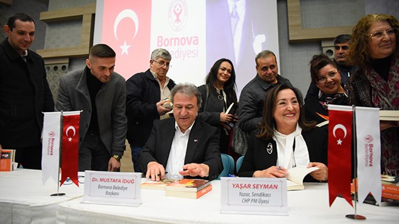 Yaşar Seyman, moderatörlüğünü 21. Dönem Ankara Milletvekili Ayşe Gürocak'ın yaptığı Bornova Belediyesi Kültür Merkezi'ndeki panelde Benazir, Zine ve Altındağ kitaplarını da Bornovalılar için imzaladı. Konuşmasında kadın ve sanatın yaşamdaki rolünün önemine dikkat çeken Seyman, 'Kadın ve sanat, yaşamın özü, temeli, rengi ve direğidir. Kadından ve sanattan yararlanmayan siyaset kendini iktidara ve yarınlara taşıyamıyor. Çünkü kadın değişimin ve dönüşümün en önemli dinamiği. Bundan yoksun olursanız yaşamın renginden yoksun olursunuz. Onun birikmiş potansiyelini siyasete katmazsanız, asla iktidara gelemezsiniz' dedi.