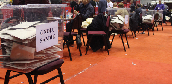 Çarşaf listeyle gidilen seçimde Celal Atik Spor Salonu'nda ilçe delegelerinin ve doğal delegelerin paylaştırıldığı 6 sandık kuruldu.