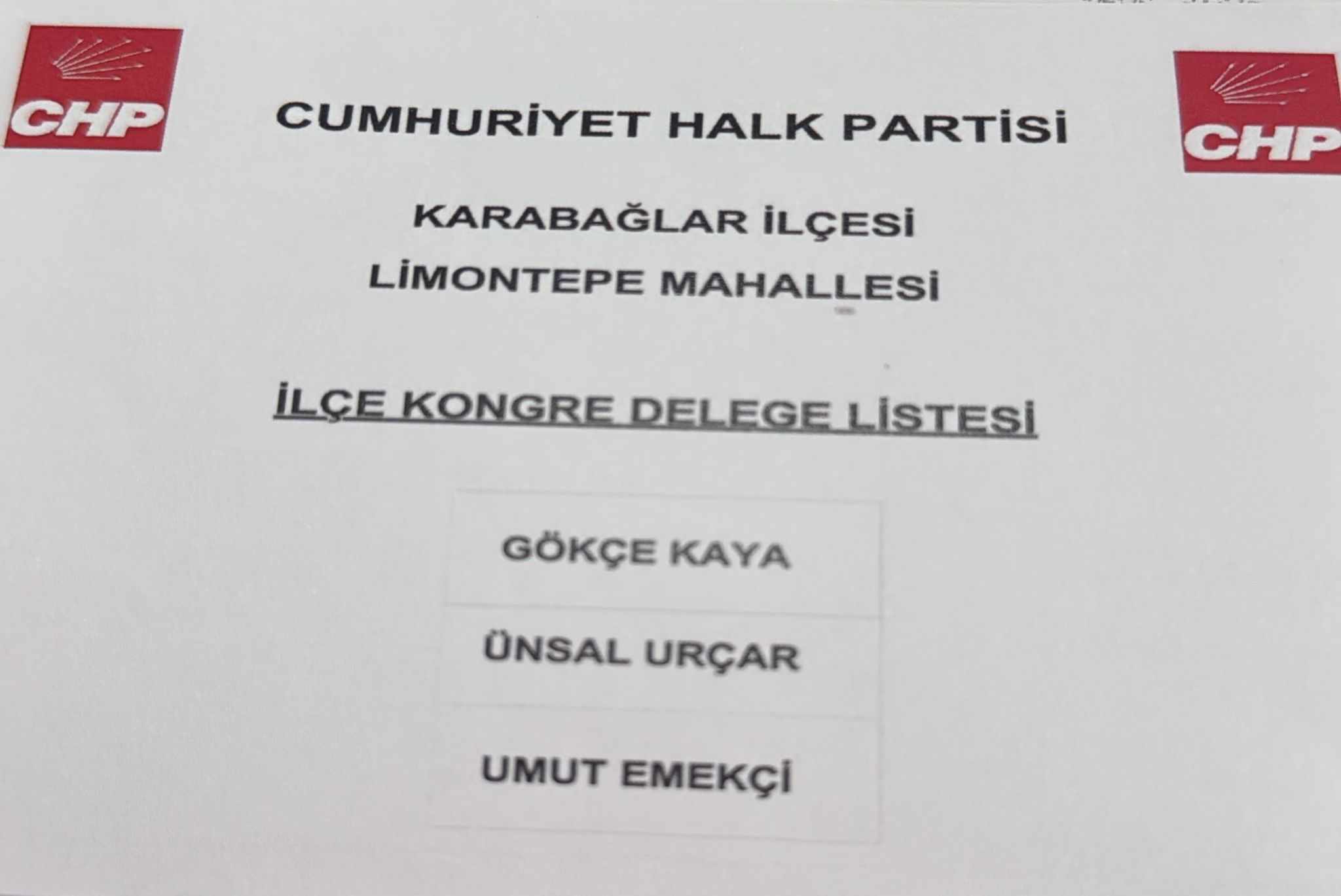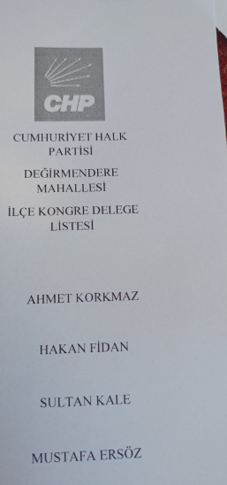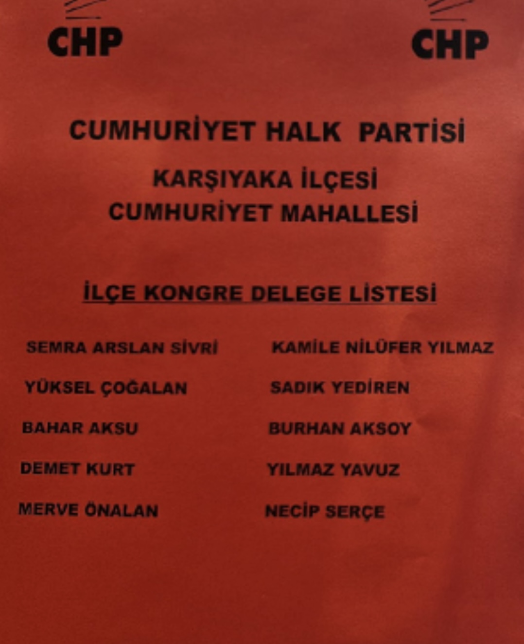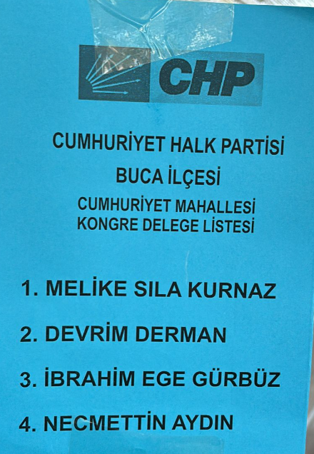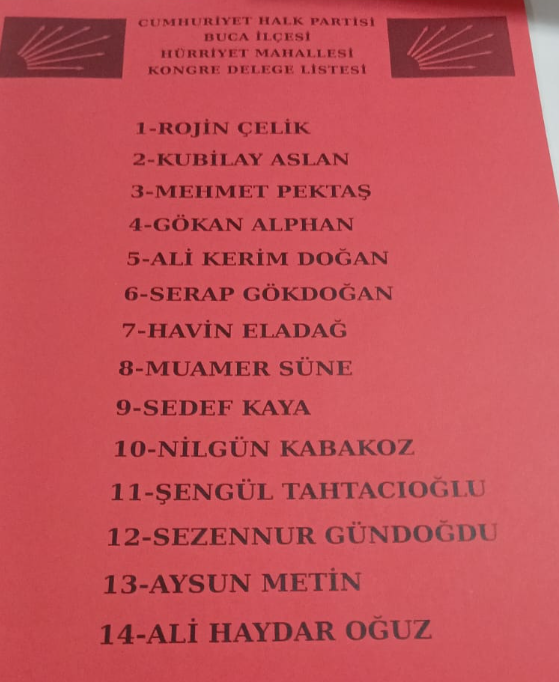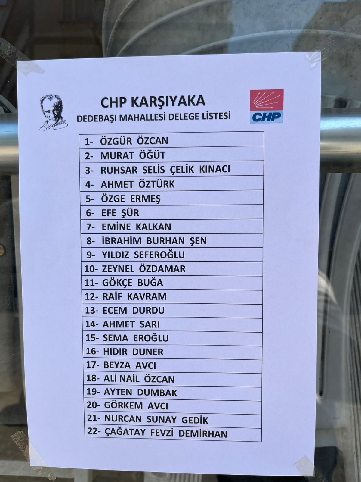 Dedebaşı Mahallesi'nde CHP İzmir İl Gençlik Kolları Başkanı Ruhsar Selis Çelik delege olarak yazıldı. İlçe Başkanlığına aday olan Faruk Yıldırım isteye giremedi.