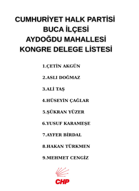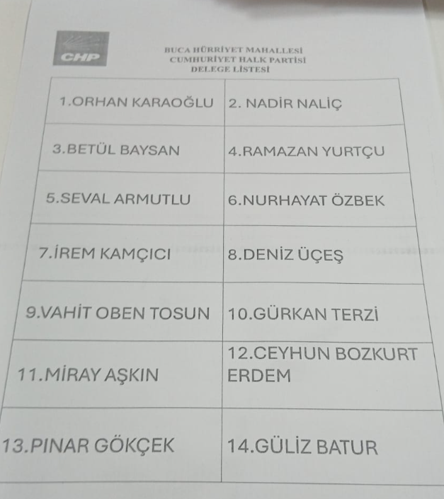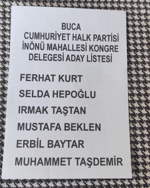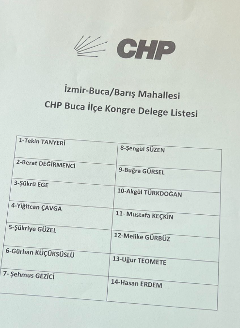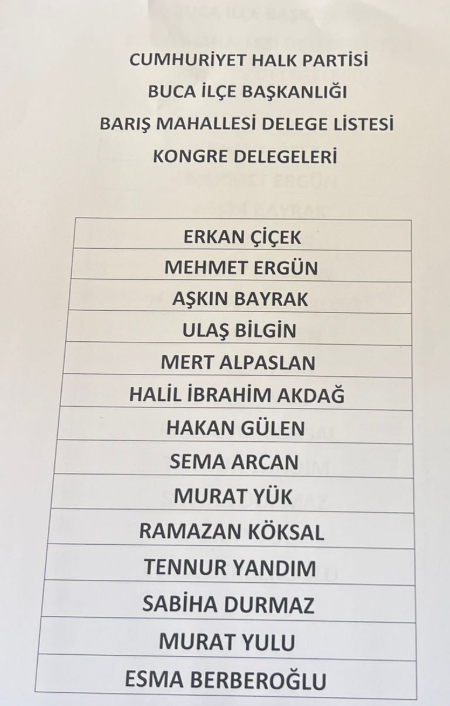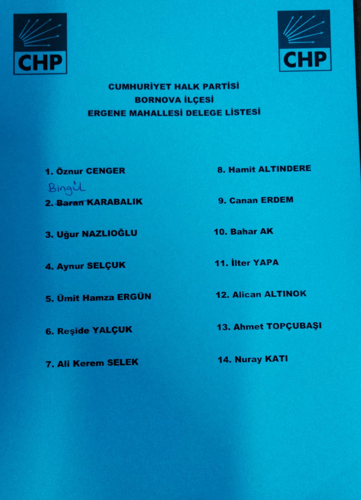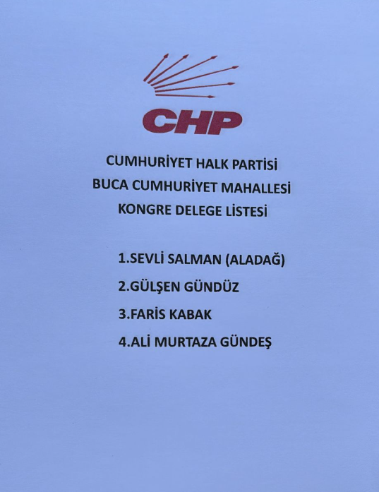 Dedebaşı Mahallesi'nde CHP İzmir İl Gençlik Kolları Başkanı Ruhsar Selis Çelik delege olarak yazıldı. İlçe Başkanlığına aday olan Faruk Yıldırım isteye giremedi.