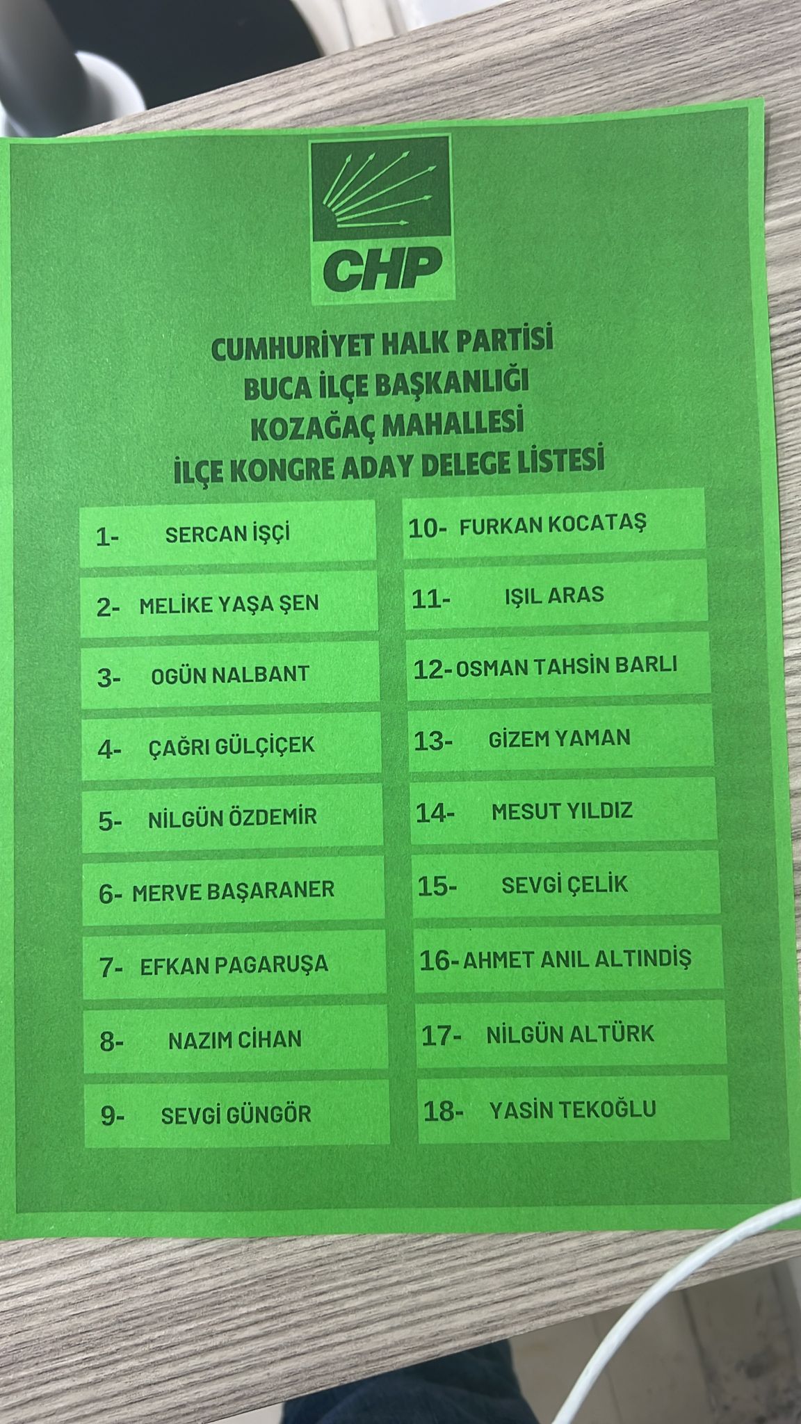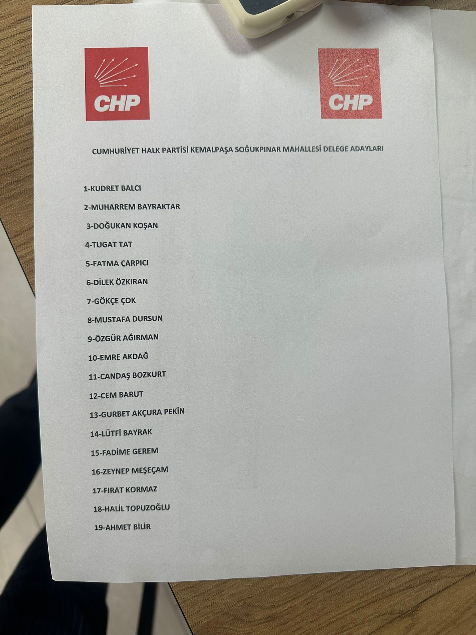 Listenin yüzde 50'si genç ve kadın isimlerden oluştu. Listeyi İzmir Büyükşehir Belediye Başkanı Cemil Tugay'a yakın isimlerden Özenç Kalkan'ın yazdığı öğrenildi.