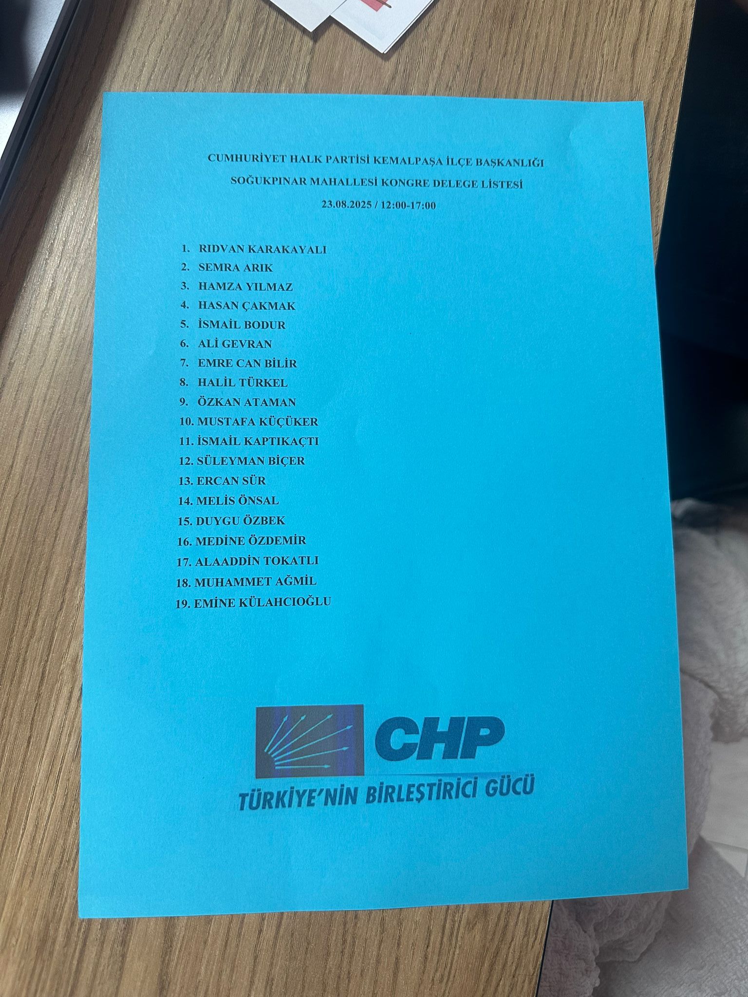 Eski Kemalpaşa Belediye Başkanı Rıdvan Karakayalı, Soğukpınar Mahallesi’nde delege seçimlerinde mavi listenin başına yazıldı. Karakayalı'nın yazıldığı mavi liste 51 oy alırken, beyaz liste 151 oy aldı. Karakayalı kendi mahallesinden delege çıkamadı.