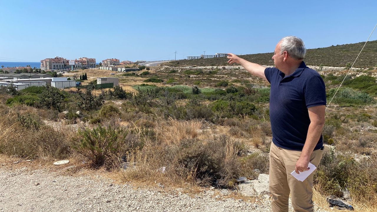 Arkamızda yaklaşık 53 dönümlük iki kupon arazi var. Denizi gören hemen otellerin arka tarafında rezidansların arasında yolun dibinde bir kupon arazi var. Bu iki arazi için bedel olarak 316 milyon lira bedel tespit etmişler. Yani metrekaresi yaklaşık 6 bin TL” dedi.