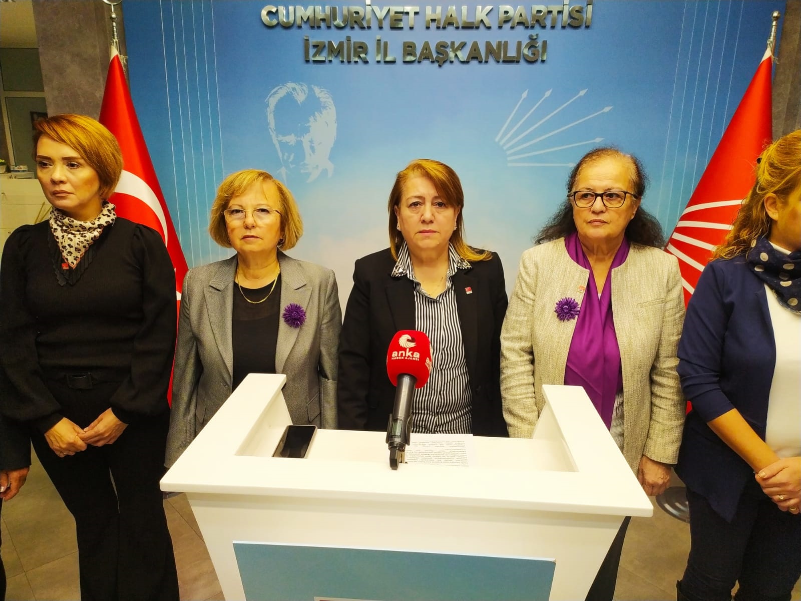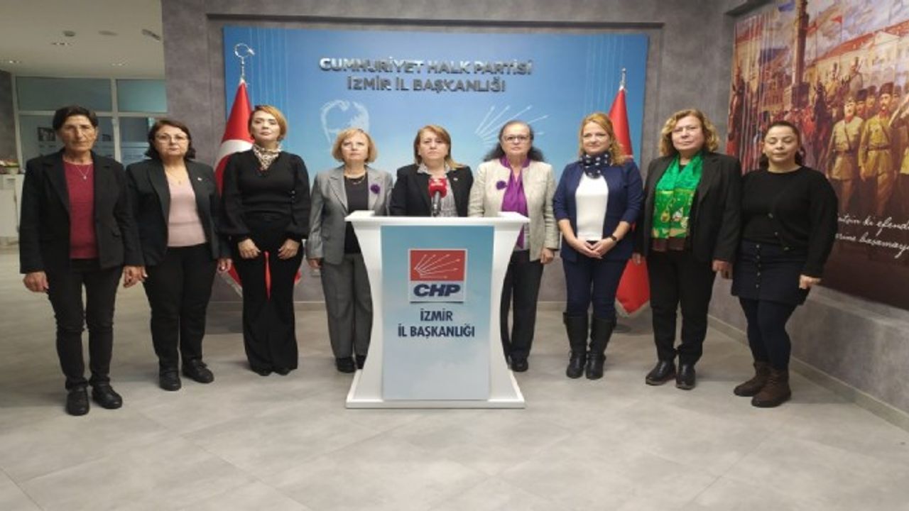 Diren ÇELİK/ EGEDESONSÖZ- İzmir'de CHP İl Binasında düzenlenen basın açıklamasında açıklamayı okuyan CHP İzmir İl Kadın Kolları Başkanı Nurdan Şenkal Uçar'a kadın kolları yönetimi de eşlik etti. Uçar, ' İktidara geldiğimizde Genel Başkanımız Sayın Kemal Kılıçdaroğlu'nun söz verdiği gibi 24 saat içinde İstanbul Sözleşmesi'ni yeniden yürürlüğe koyacağız' ifadelerini kullandı.