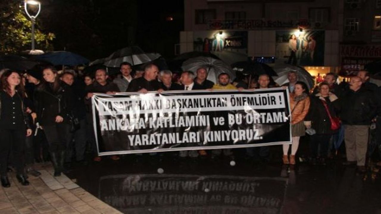 CHP Manisa İl Gençlik Kolları bu akşam, Ankara'daki terör saldırısına tepki göstermek için Şehdaler'daki Manolya Meydanı'nda bir araya geldi. CHP'li gençlerin yanı sıra eyleme; CHP Manisa milletvekilleri Tur Yıldız Biçer ve Mazlum Nurlu ile CHP Manisa İl Başkanı Halil Tokul, ilçe başkanlıkları, partililer ve çeşitli sivil toplum örgütlerine üye kişiler de katıldı. Yaklaşık 100 kişilik bir grup, 'Yaşam Hakkı Başkanlıktan Önemlidir. Ankara Katliamını ve Ortamı Yaratanları Kınıyoruz' yazılı pankart açtı. Grup adına açıklamayı yapan CHP Manisa İl Gençlik Kolları Başkanı Gülşah Durbay, 'Terör olayları sebebiyle yaşanan ölümlerden başımızı kaldıramıyoruz. Bu nedenle sessiz bir eylem yapmak istedik' dedi. Durbay'ın açıklaması ardından grup, 20 dakika boyunca yağmur altında sesizce bekledi.