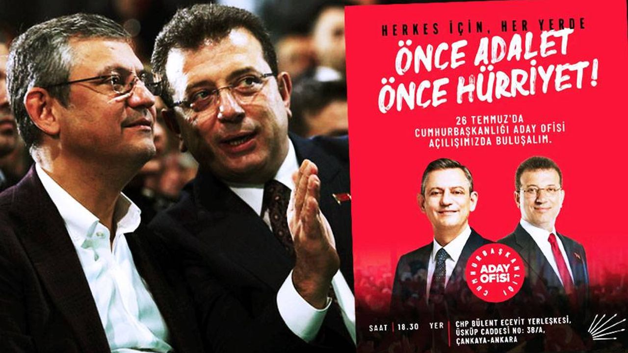23 Mart’ta yapılan ön seçimle İBB Başkanı Ekrem İmamoğlu’nu cumhurbaşkanı adayı olarak belirleyen CHP, Cumhurbaşkanı Aday Ofisleri ile seçim kampanyasını örgütlemeye hazırlanıyor. Genel Başkan Özgür Özel’in katılacağı açılış programıyla, Ankara Üsküp Caddesi’nde bulunan Bülent Ecevit Parti Okulu binasında Cumhurbaşkanı Aday Ofisi çalışmalarına başlayacak. Açılış yarın (26 Temmuz) saat 18.30’da gerçekleşecek.