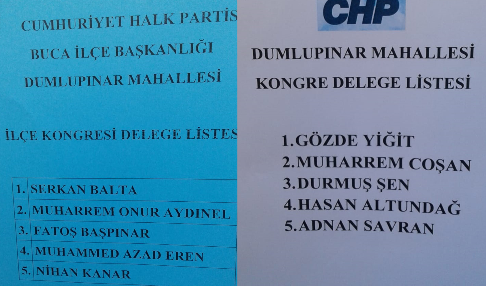 5 delegenin seçileceği Dumlupınar Mahallesi'nde de çift liste yarışı var. Sandıkta mavi ve beyaz listeler yarışırken delege adayları şöyle: